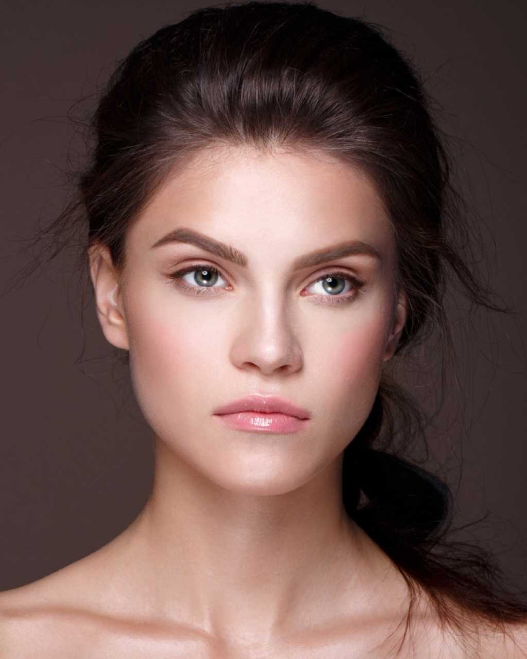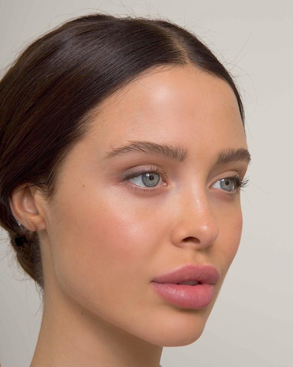 A fairly new makeup option, but already so loved by many girls. Do not think that this is a complete lack of decorative cosmetics. The main element in this make-up is a smooth and uniform tone for the face. To this you can add a little blush of a gentle shade. Also important is the design of the eyebrows in a calm tone, suitable for your hair color.