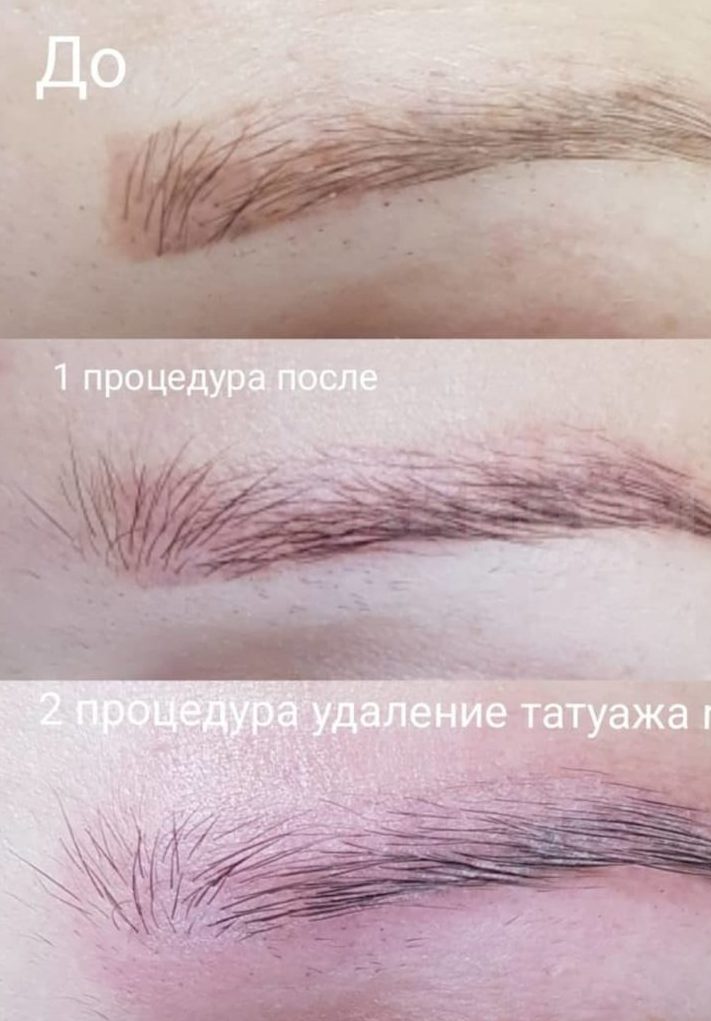 Tattoo removal is only with a laser. Under its rays, the pigment introduced under the skin is destroyed without touching the hair follicles and follicles. This procedure is performed using the following method:
