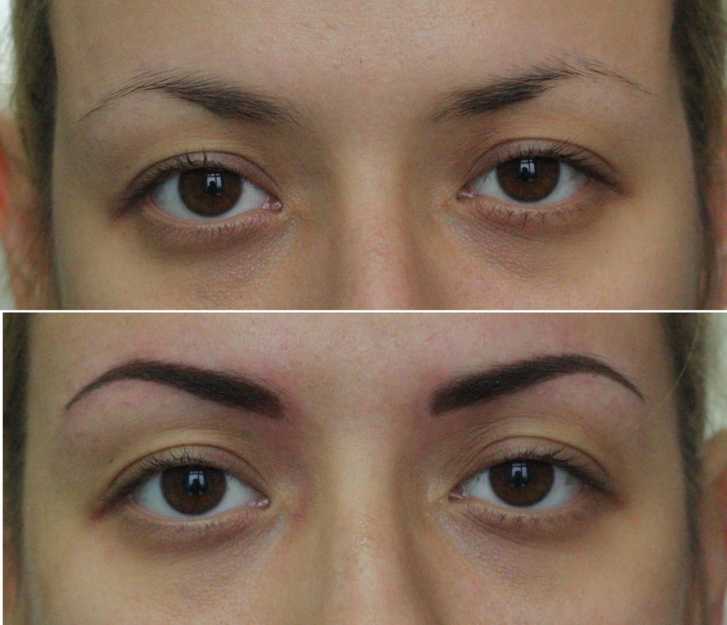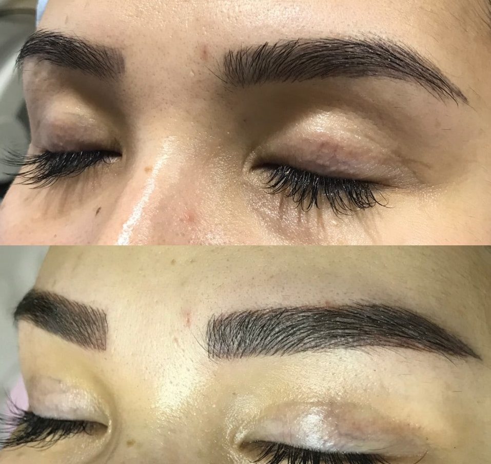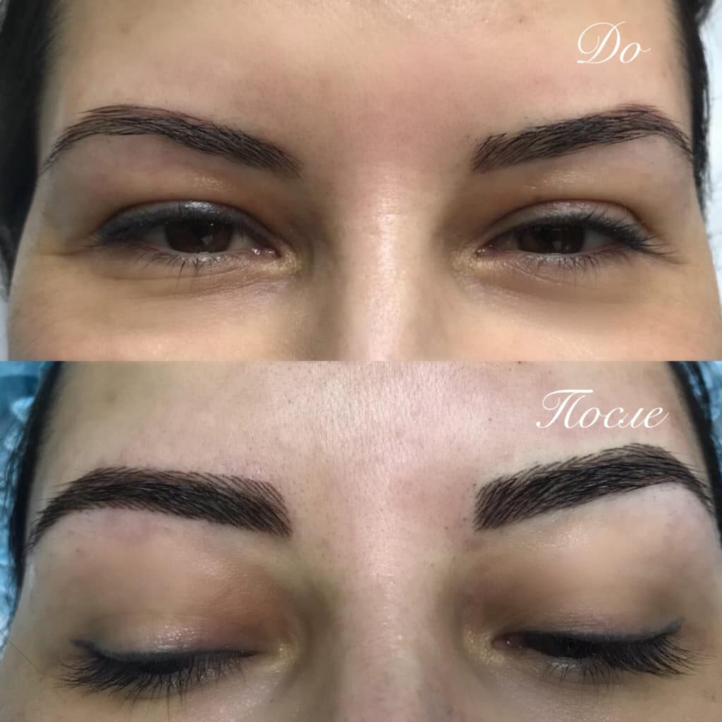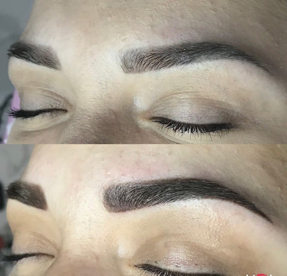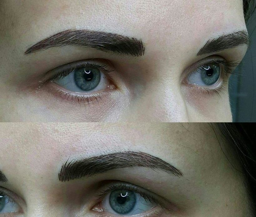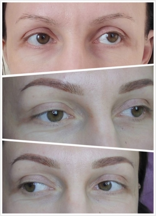 Using this technique, you can create beautiful and natural eyebrows, but this procedure has a rather painful application method. Some girls refuse anesthesia, but we do not recommend that you do this. The fact is that there are a lot of nerve endings in the skin of the eyebrows, which makes this area very sensitive. It is very rare that girls have a low pain threshold, so they do not use anesthesia.