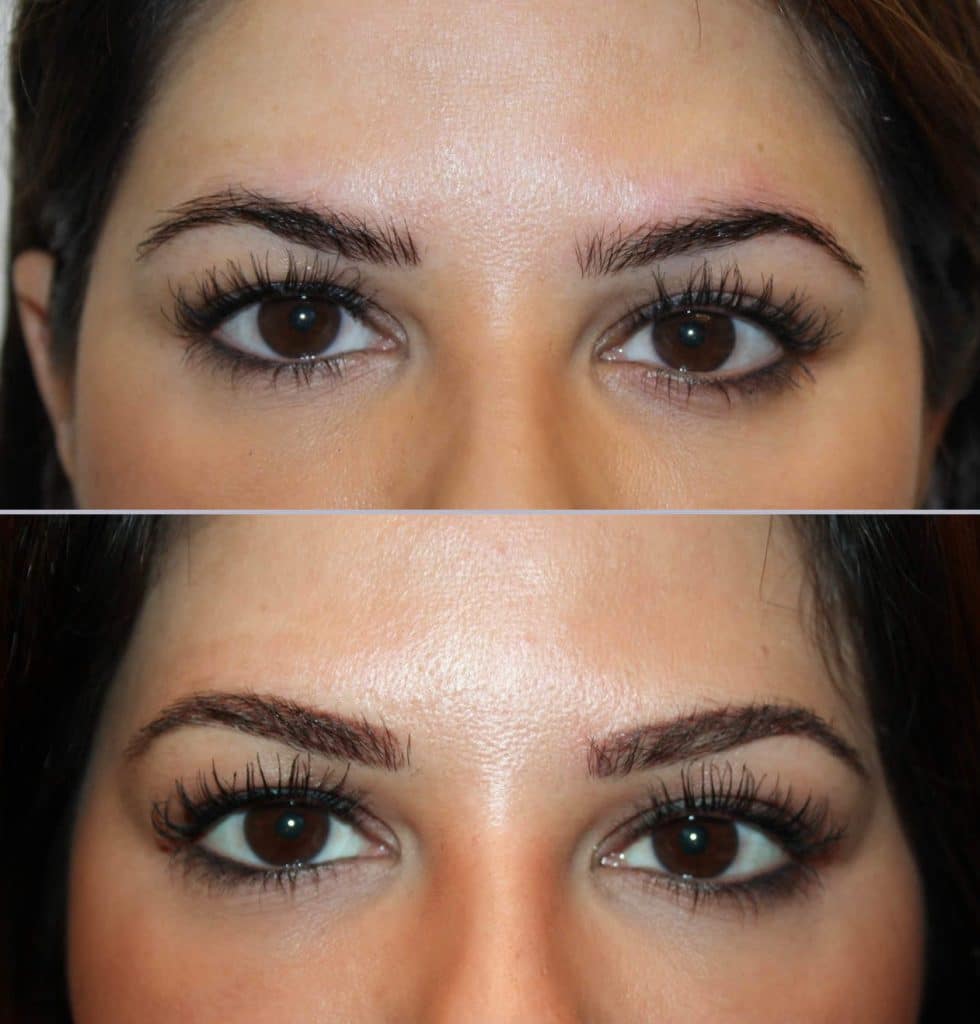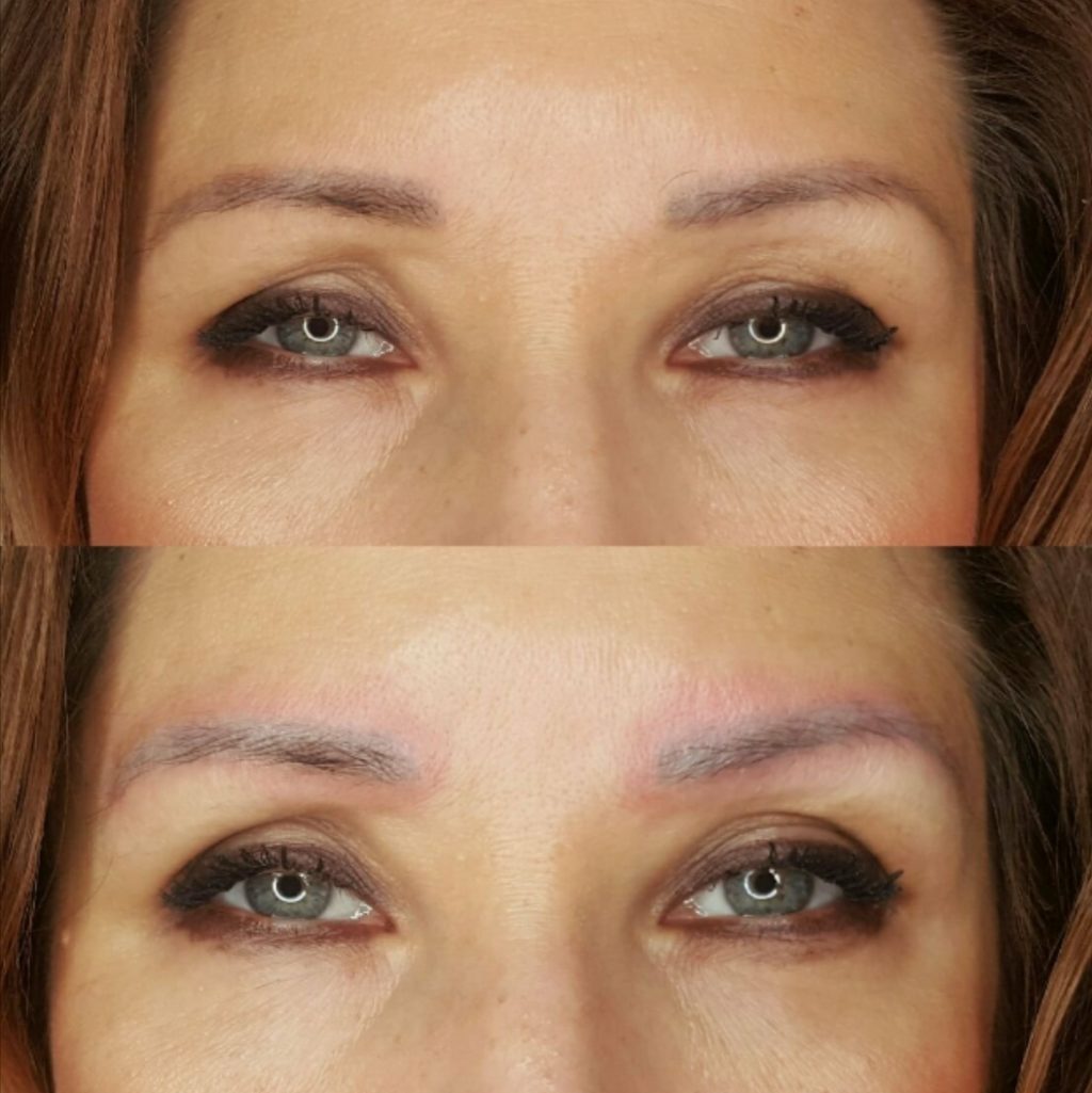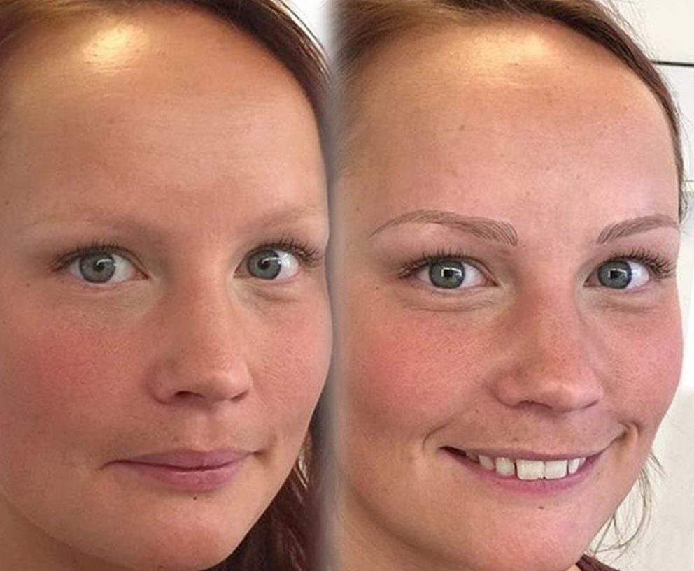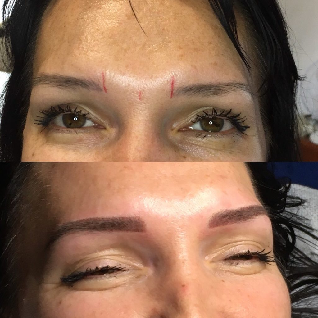 Using this technique, you can create beautiful and natural eyebrows, but this procedure has a rather painful application method. Some girls refuse anesthesia, but we do not recommend that you do this. The fact is that there are a lot of nerve endings in the skin of the eyebrows, which makes this area very sensitive. It is very rare that girls have a low pain threshold, so they do not use anesthesia.