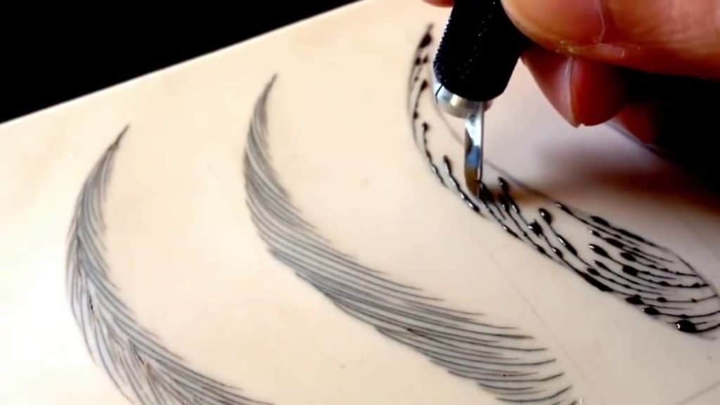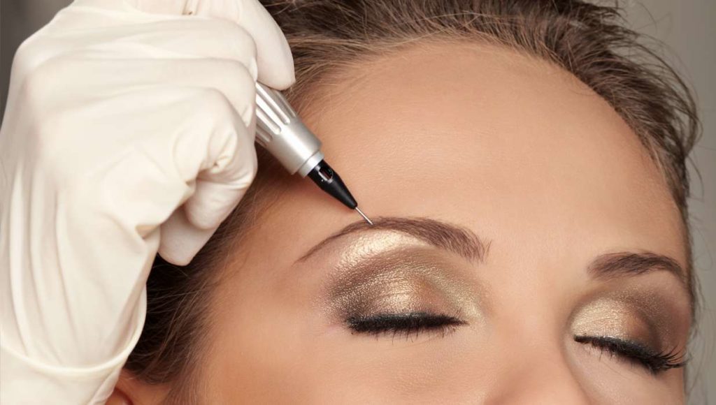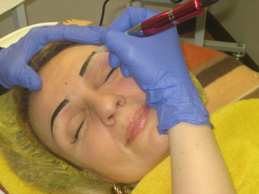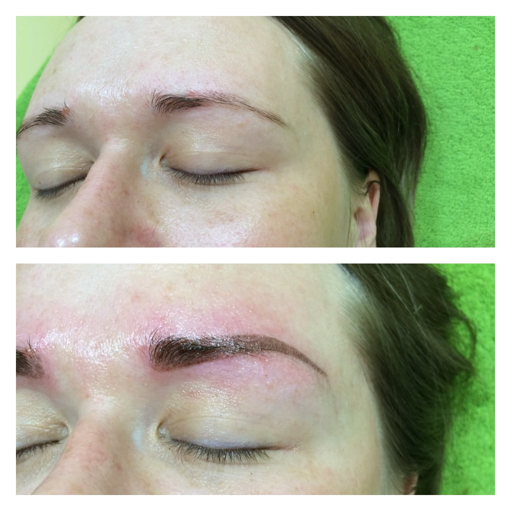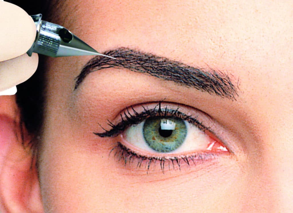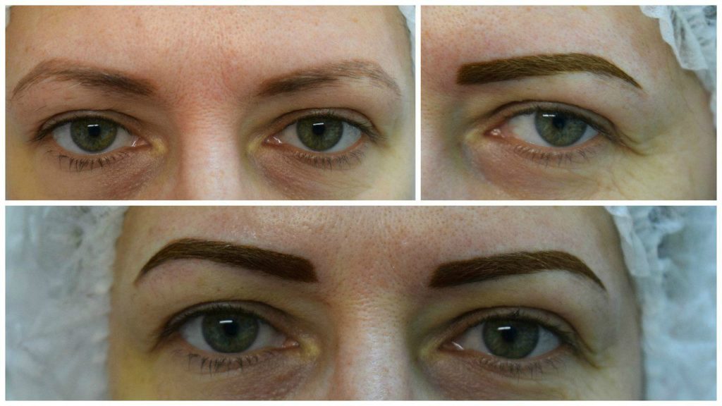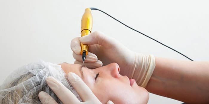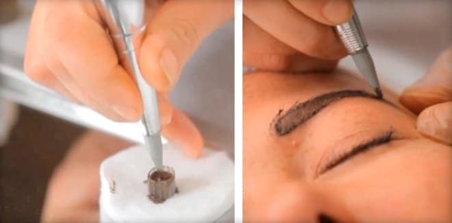 When the work area is prepared, the master proceeds to apply pigment using a special tool, at the end of which there are sharp needles. By pulling the eyebrow skin a little, the master with the help of such a needle inject pigment into the skin.