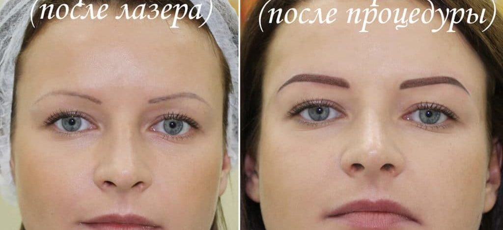 - After the master disinfects the skin of the eyebrows and applies an anesthetic. Because the laser causes a slight pain in the form of a burning sensation.