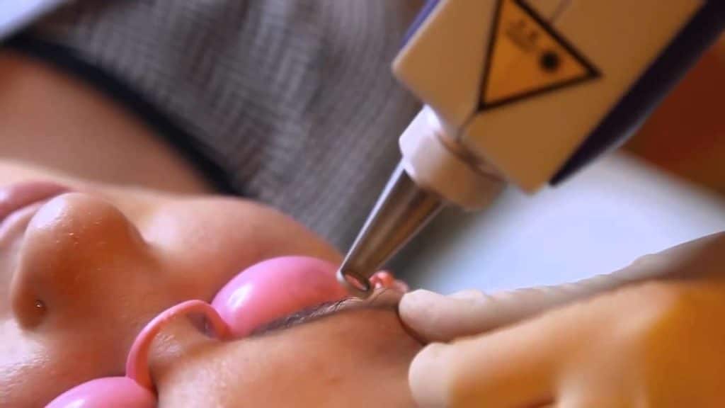 - The laser beam will be adjusted according to the color of the pigment that has been injected into the eyebrows. The darker the pigment, the more powerful the beam will be.