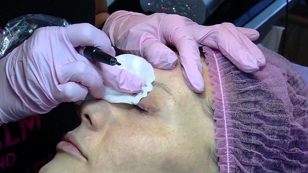 After they start anesthesia, and here the fun begins. The fact is that only in this tattooing technique is anesthesia applied for 30 minutes unlike others where time is calculated from 5 to 10 minutes.