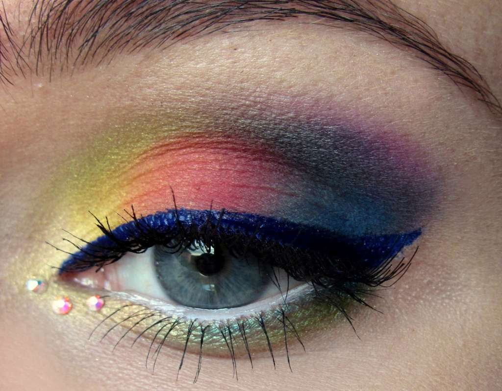 Often in the eastern form of makeup, makeup artists use several types of shadows. It can be a multi-colored palette that skillfully intertwines with each other, creating an unusual, bright makeup.