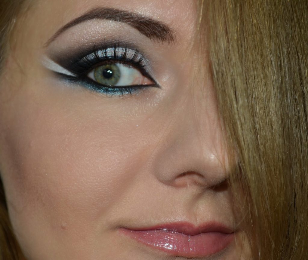 Arrows are drawn both along the lower and upper eyelids with a sharp tail in the outer corner of the eye. A sharp corner is also drawn in the inner corner of the eye.