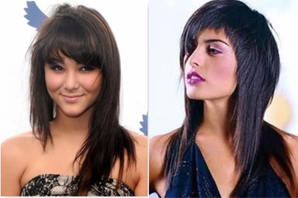 If you intend to wear long hair, you definitely need a bang, but remember that it should not be sparse or short. Asymmetric haircuts and elongated bangs will suit you. And in no case, do not smooth your hair!