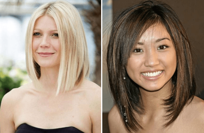 You need to shorten your face and smooth the corners. Do not worry, for this you do not need a surgeon, a carefully selected haircut works wonders. And so, remember: you need to give up symmetrical haircuts and haircuts long at the level of the chin. The haircut should be either shorter or longer than the chin, well, if it frames the face, this will help smooth the corners. A sloping bang will complete the job.