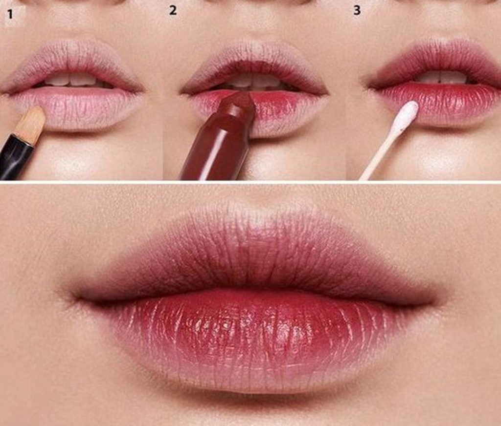 After you apply lipstick or tint to the middle of the lips and barely, barely rub it. With this technique you can create the effect of “bitten lips”, which has recently been very fashionable among Asian girls.