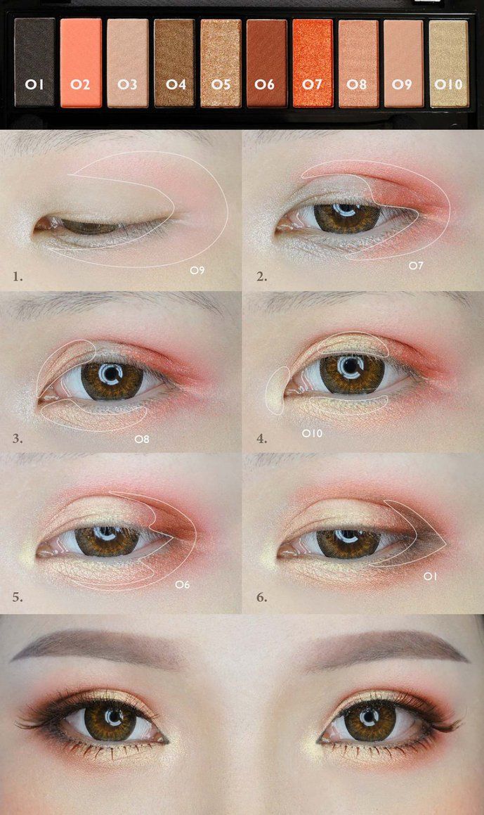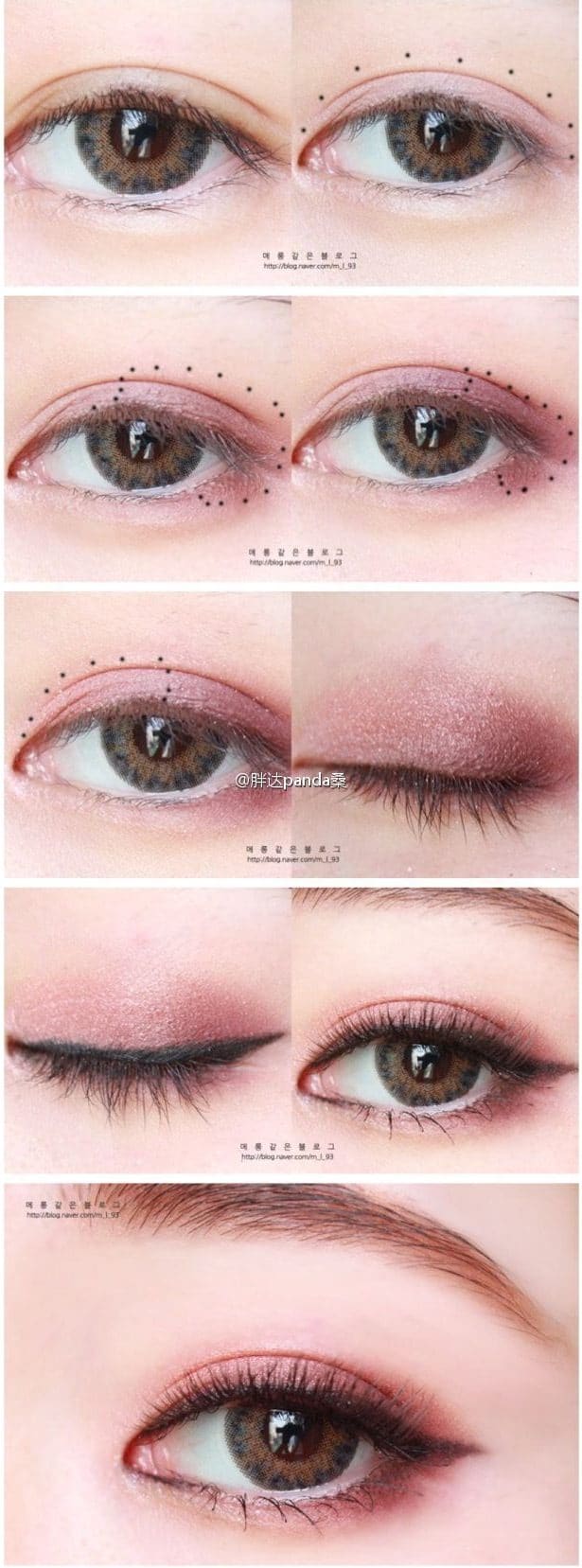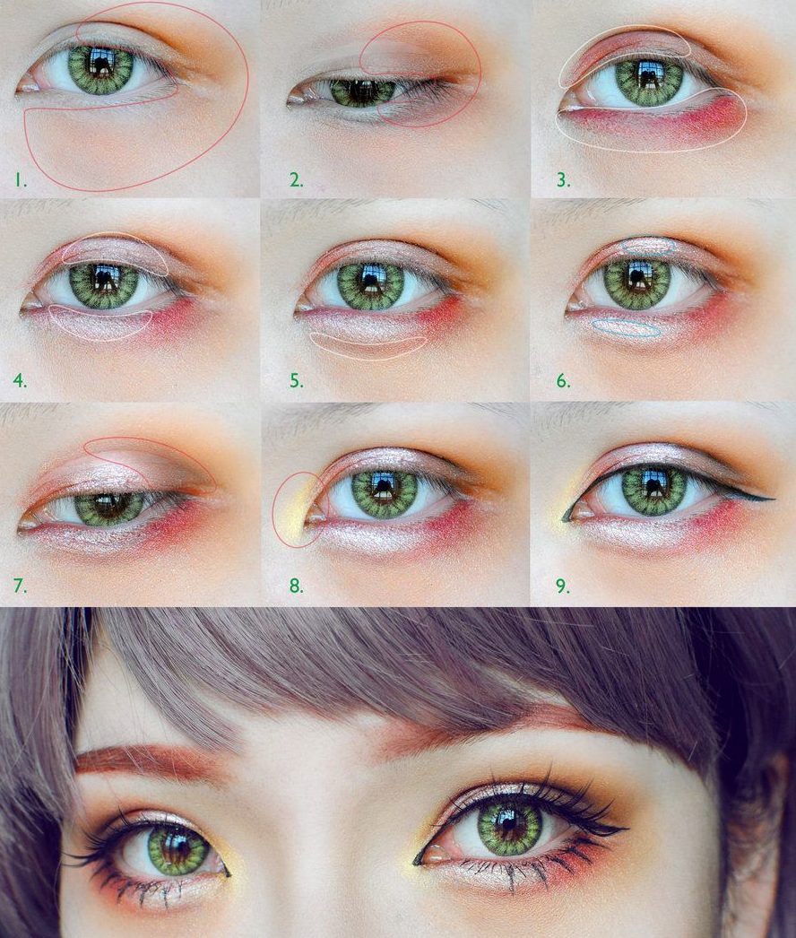 Asian-style eye makeup involves visually reducing your eye, as well as creating a narrow incision. To make such an incision you need to visually use the arrows to lower the outer corner of the eye. Take eyeliner or pencil and draw a thin arrow on the upper eyelid, the tail of which you need to draw down. Also, be sure to make a small, sharp corner in the inner corner of the eye with a pencil.