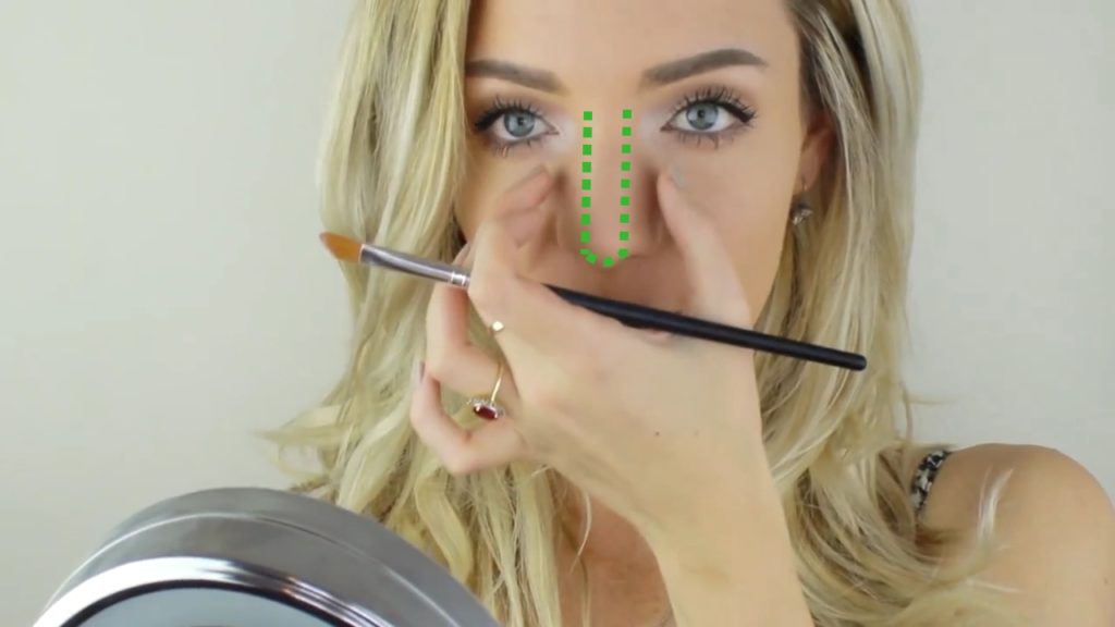 Then use the applicator to blend the corrector so as to hide its clear edges. For clarity, use the drawing instructions. Also do not forget to apply a little highlighter on the bridge of the nose. This can lighten the nose, which will give it an even more neat shape.