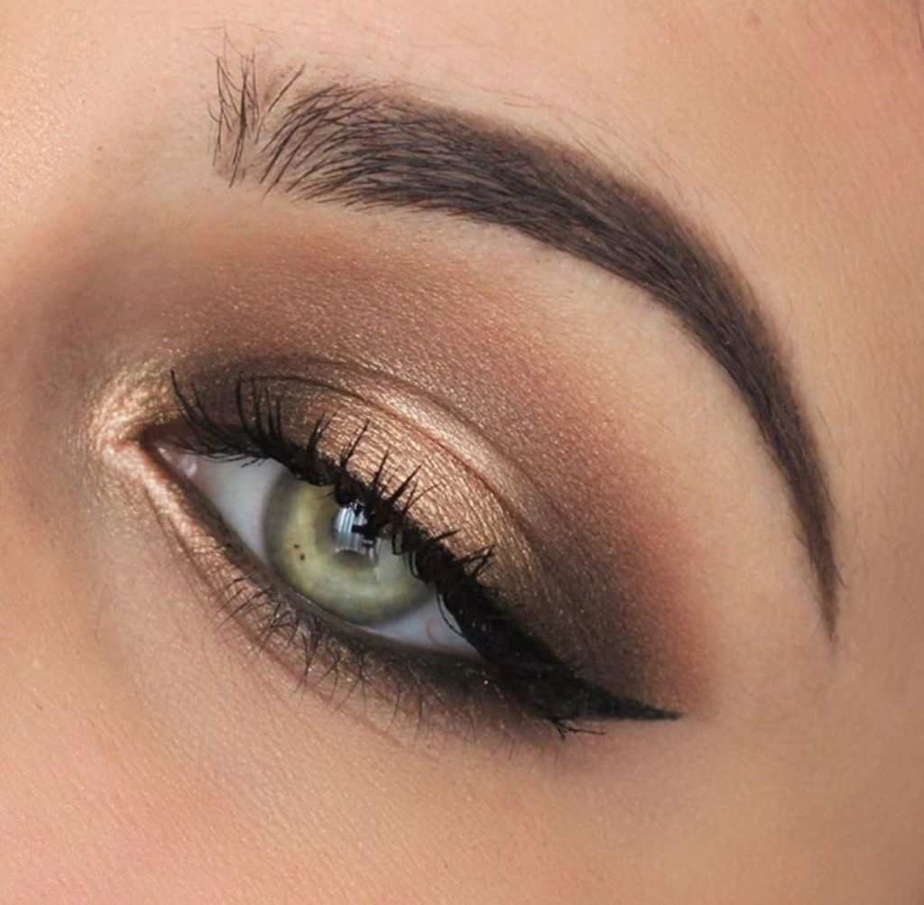 Beige and brown shades of eyeshadow is the best combination in makeup. For graduation makeup, this is also the best option. This combination of colors is suitable for any eye shade. This makeup will be pretty gentle. Therefore, it is necessary to choose a bright lipstick for contrast or nude for a calm look.