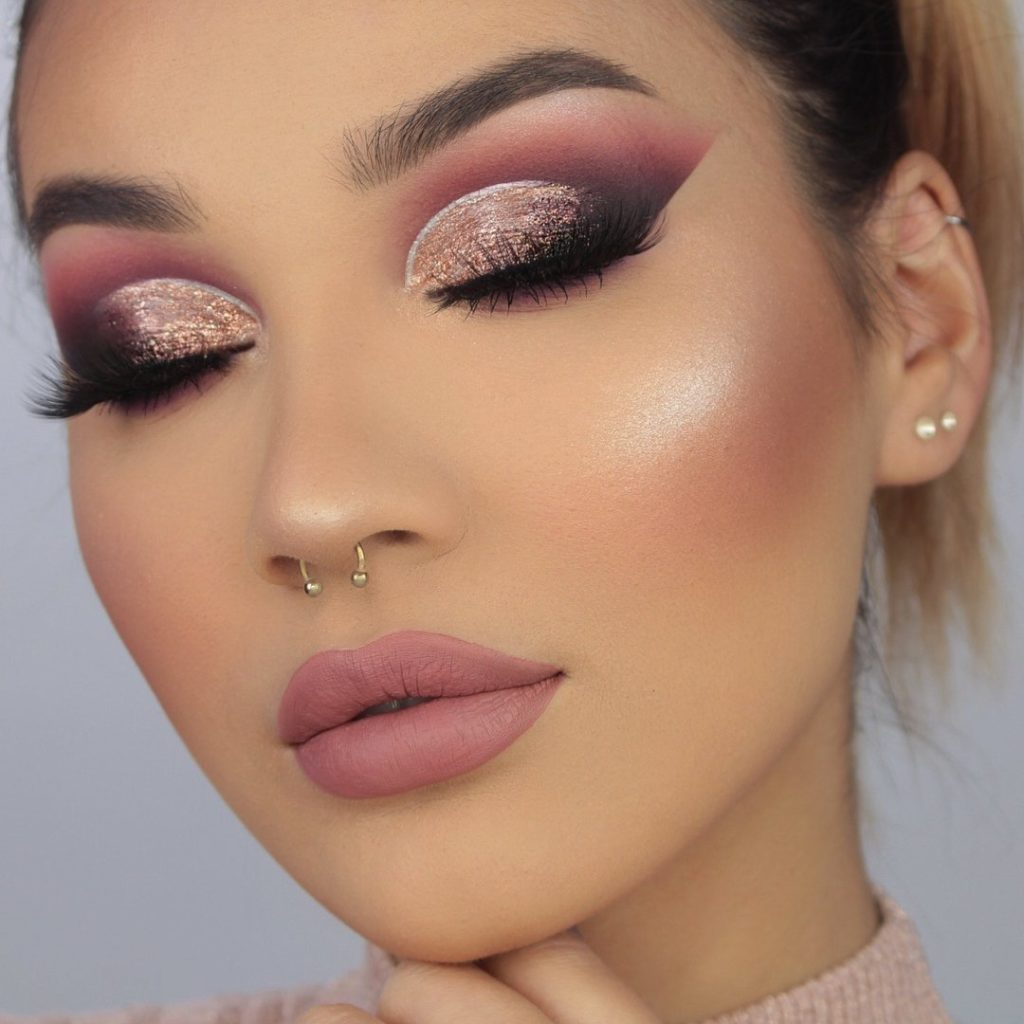 For young girls, makeup in pink shades will be the best option. This color in makeup is suitable for all girls and goes well with all the colors of prom dresses.