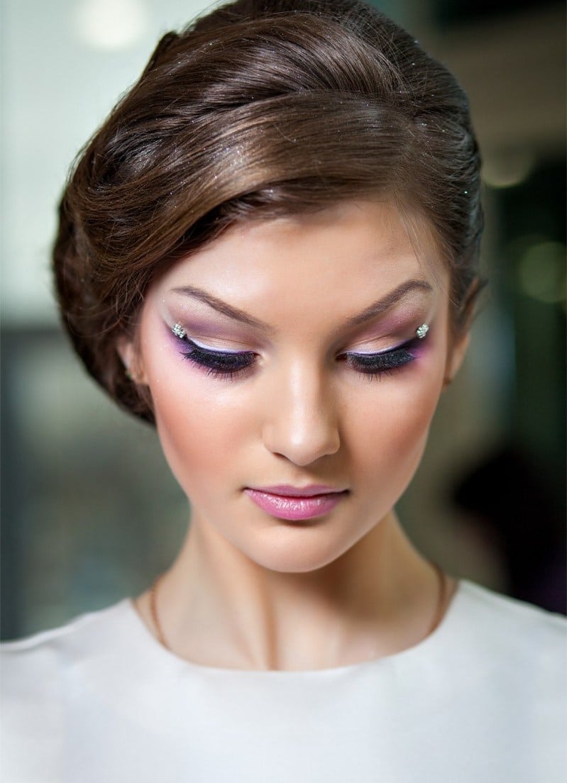 For final makeup, choose brighter shades of pink and more often with shimmer shadows.