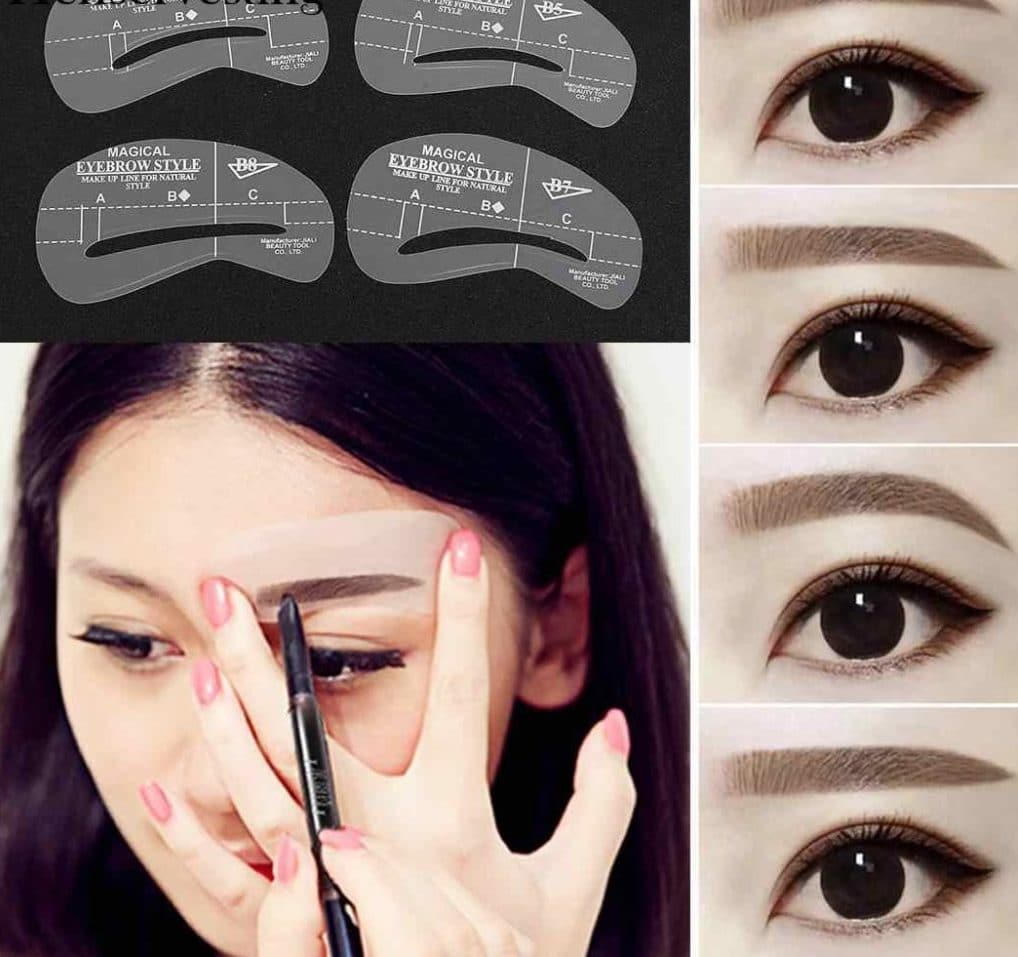 And a very good way is to purchase stencils. They exist in various forms, among which you can find your own version. When you attach the form, simply draw with a pencil the outline of the future eyebrow, shade the middle itself, and then blend it with the applicator.