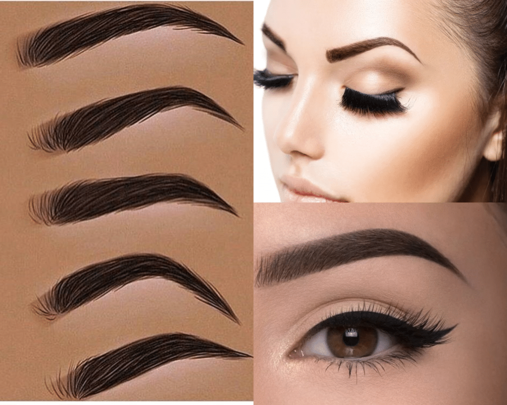 Use our picture hint, which is the best shape of the eyebrows to match your face type.