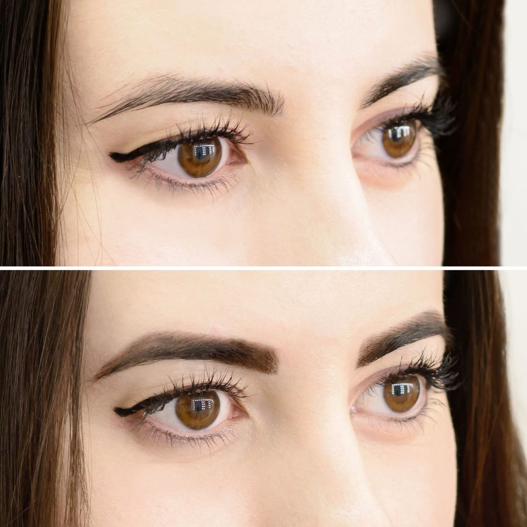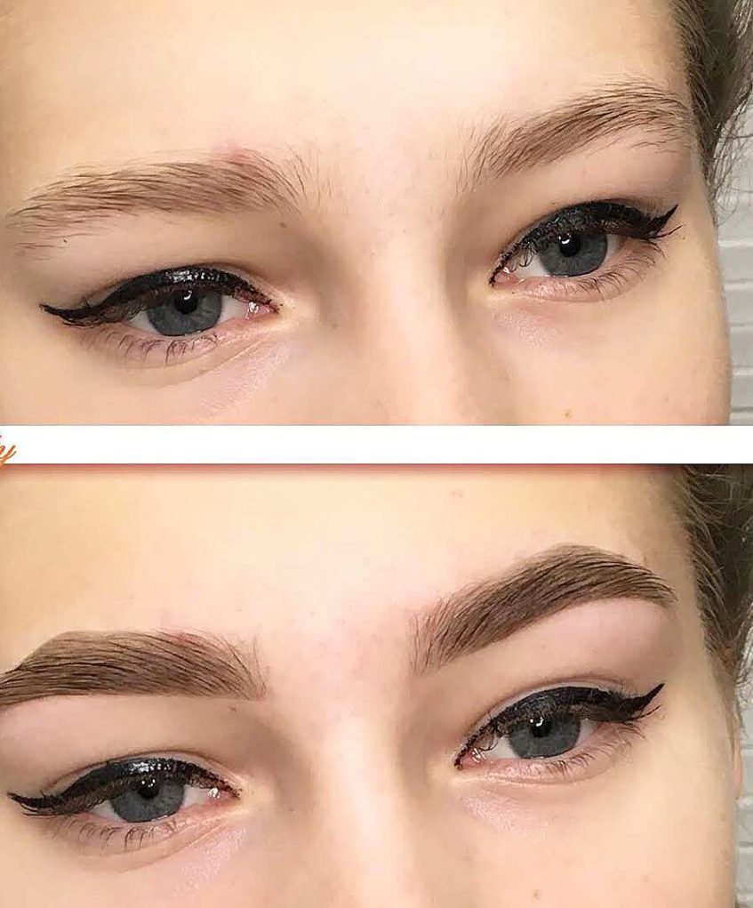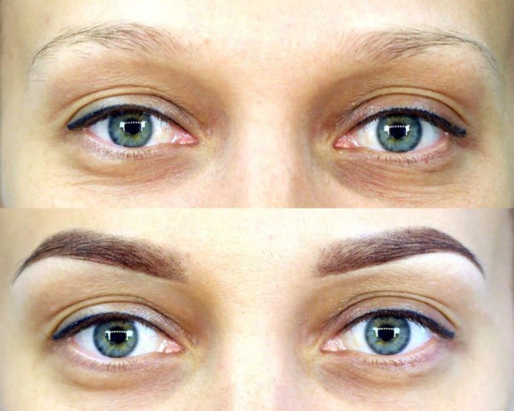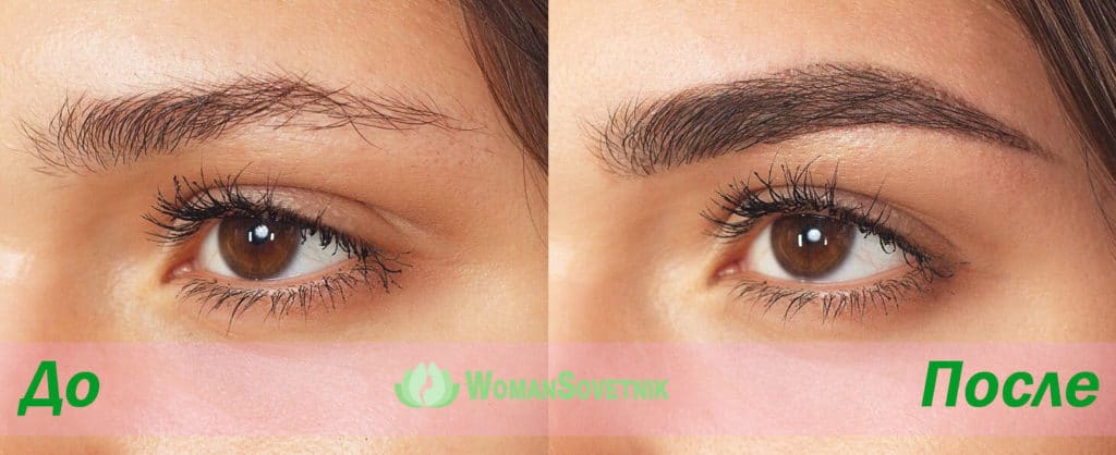 By tinting techniques, shadows are considered comfortable themselves. Shadows have a matte, smooth structure that allows them to be applied evenly on eyebrows. Shadows paint over all hairs without exception, which helps to create the effect of the density of eyebrows.