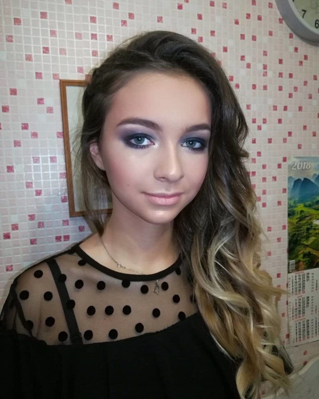 At this age, the girls are already starting to go on a date, and here it is very important to properly paint her face. In this type of makeup, eye highlighting in slightly bright colors is allowed. It can be dark brown shades with which you can tint the girl the outer corner of the eye. But at the same time, lips should always be tinted in a matte shade of lipstick.