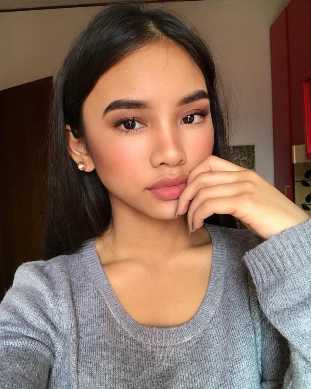Lips can be tinted with dark cherry lipstick or rich berry shine. You can also highlight cheekbones with blush and hide skin defects with mineral powder.