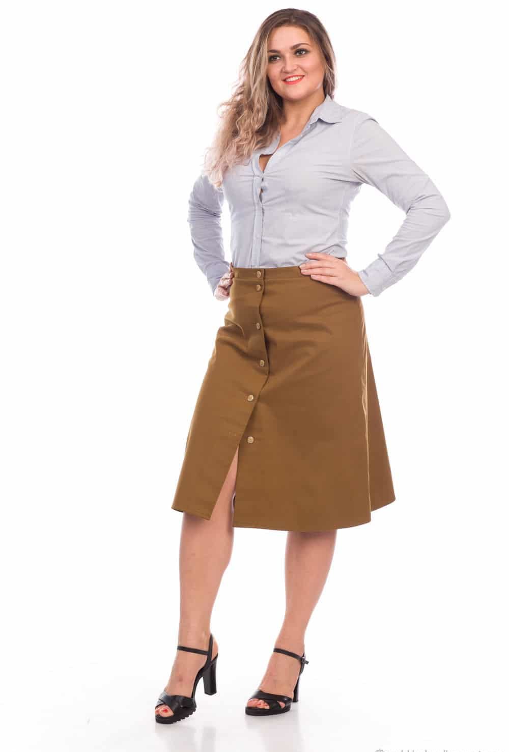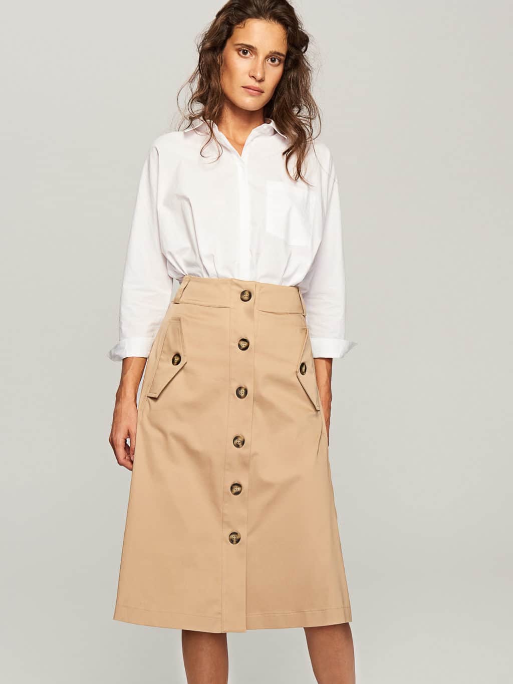 The midi skirt is a truly versatile model, and with a button closure on the front, it looks even more interesting and attractive. She perfectly decorates your image in a casual and business style.