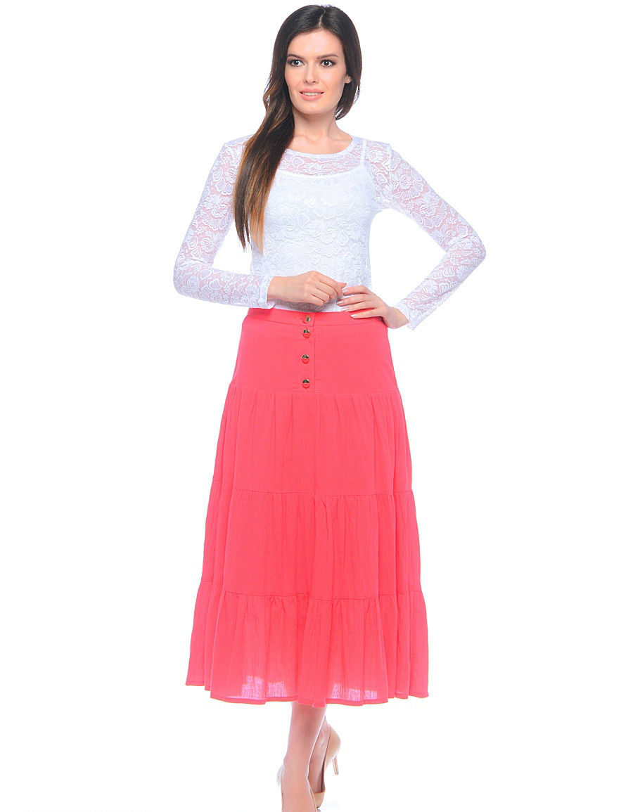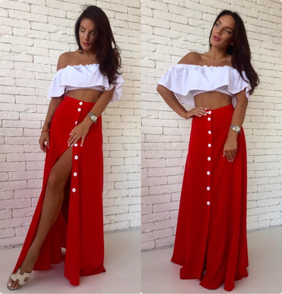 Bright maxi skirts are appropriately combined with a light top, the bottom stands out in contrast to the blouses.