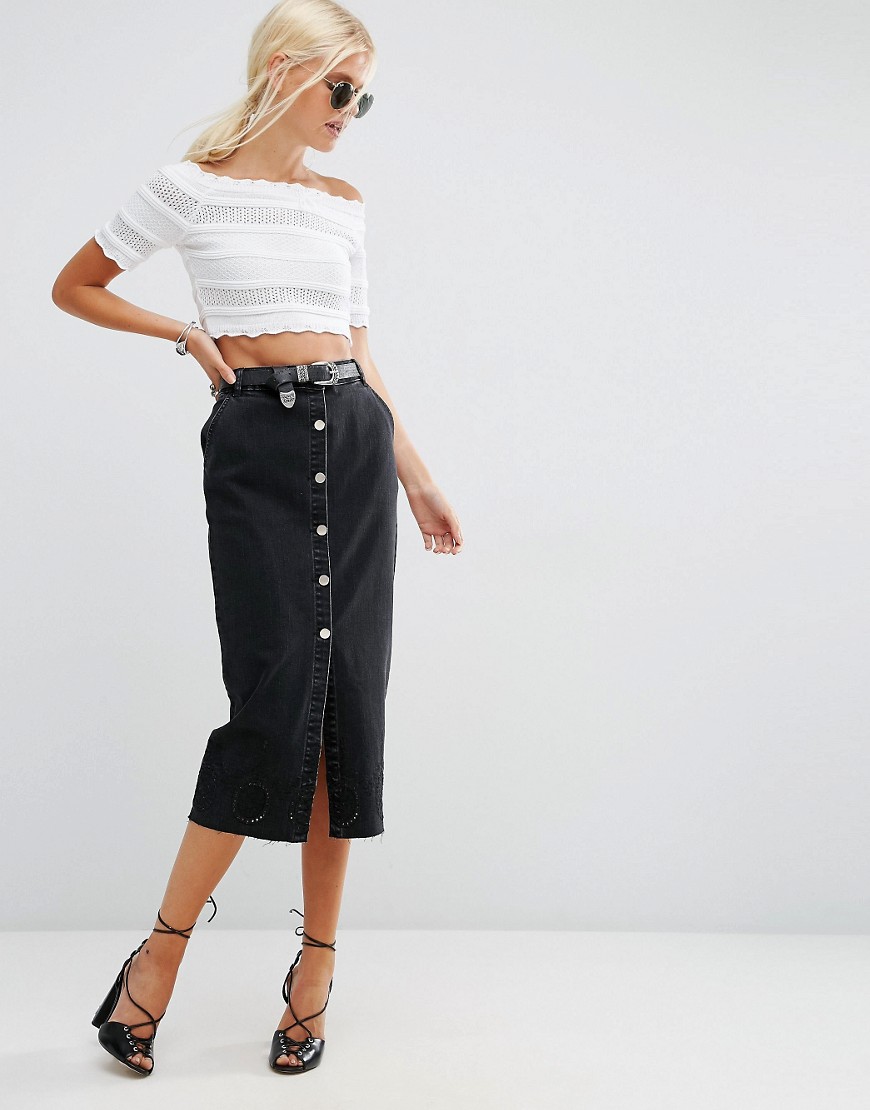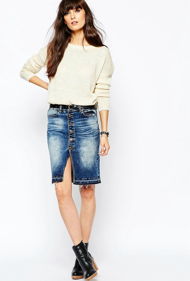There are many interpretations of denim skirts: mini, midi, pencil. They are easily combined with tops, sweaters, T-shirts, as well as jackets. Therefore, you can easily choose the option you need.