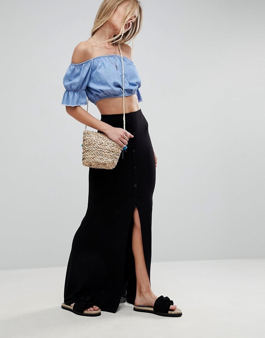 A maxi skirt is a great choice for creating a romantic and feminine look. Its design is slimmer and advantageously extends your silhouette.