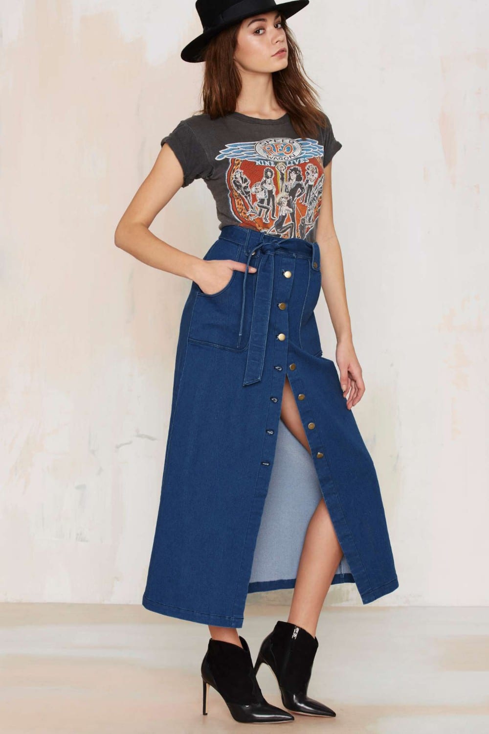 Jeans are always relevant, and they are practical and comfortable. With a denim button-down skirt, you can effortlessly create a stylish and extraordinary look.