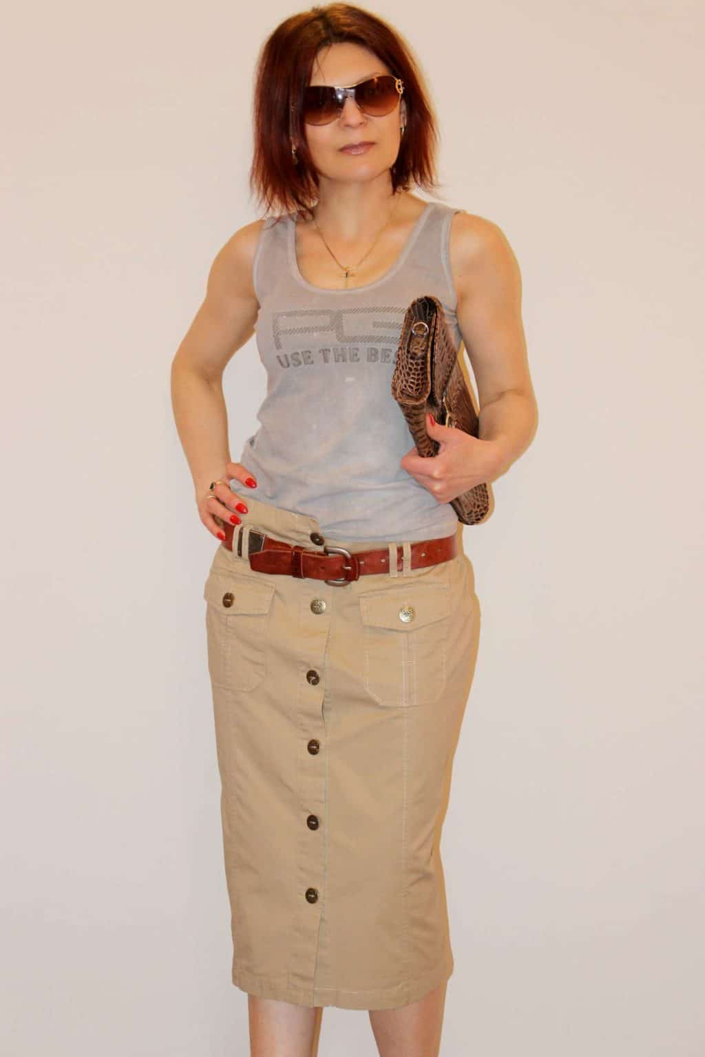 Skirt pencil - This is a classic, and with the decor in the form of buttons in the front, it looks interesting and extraordinary.