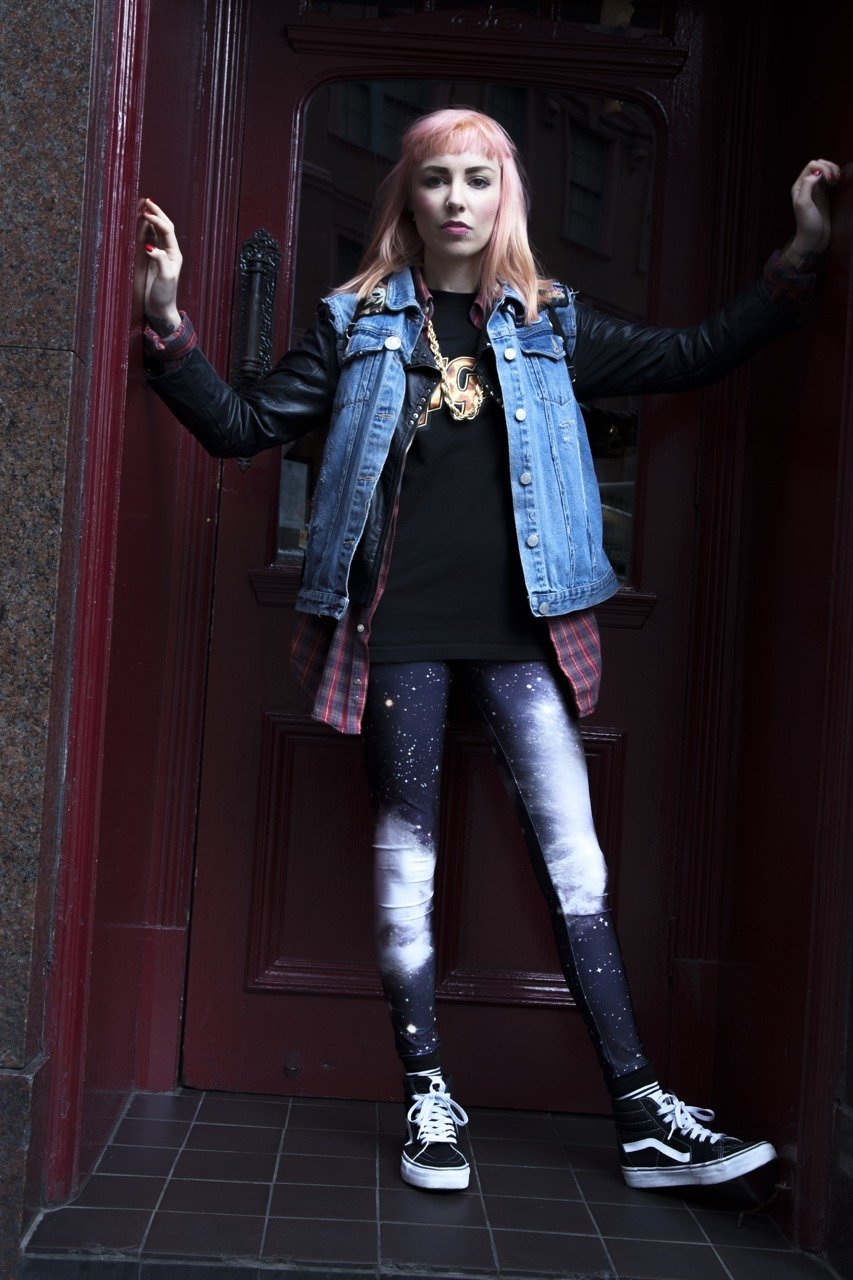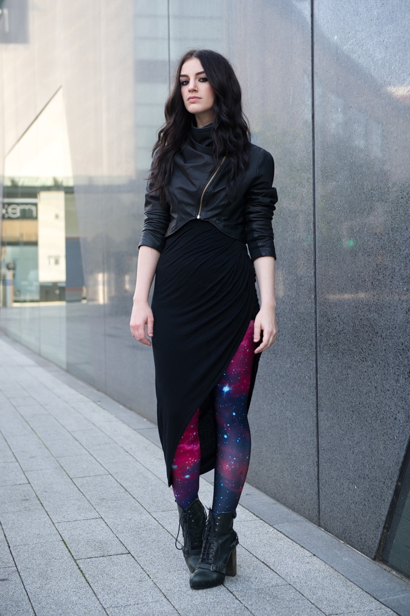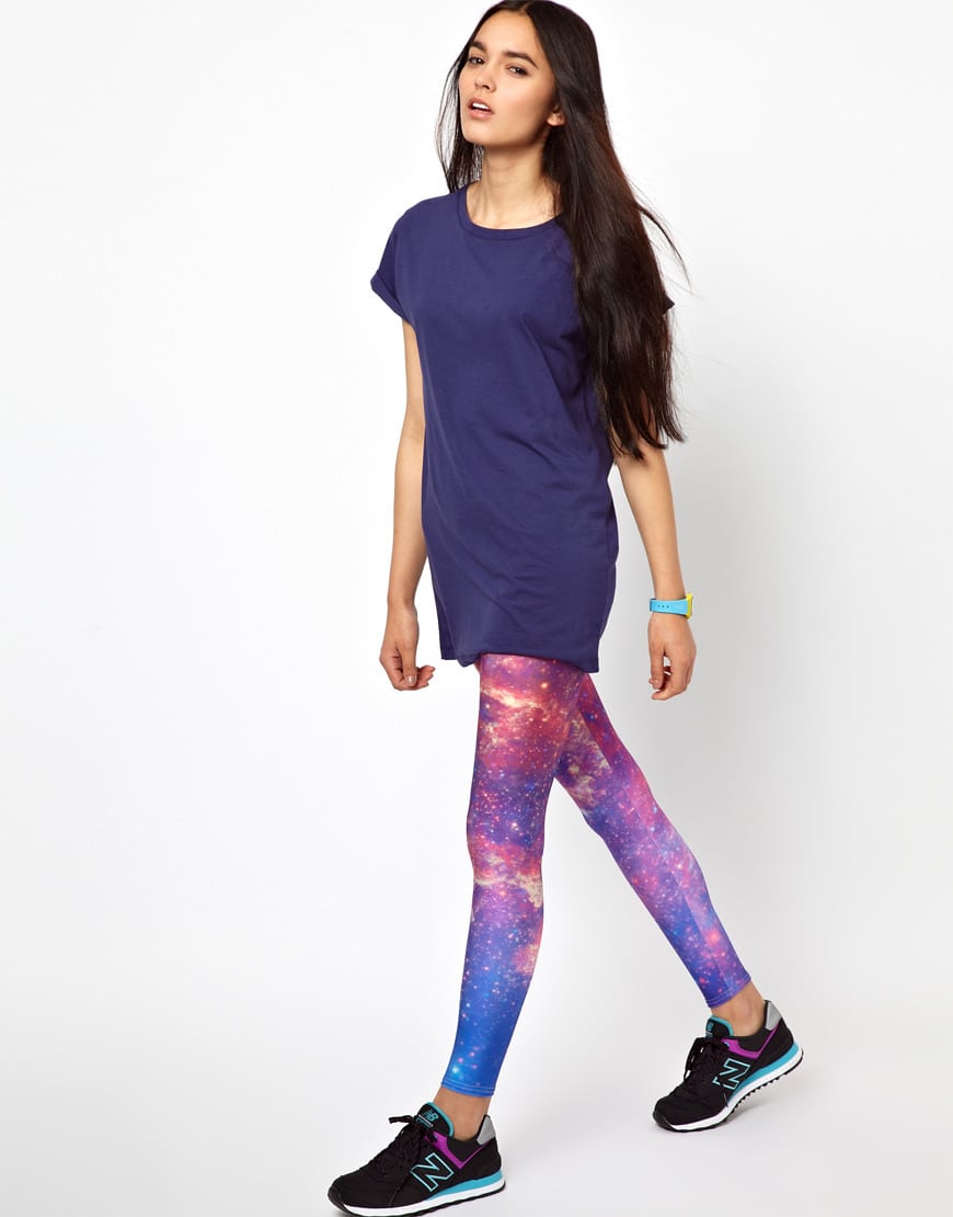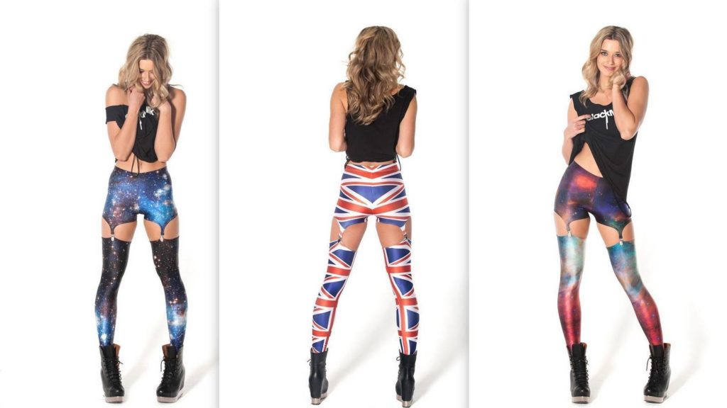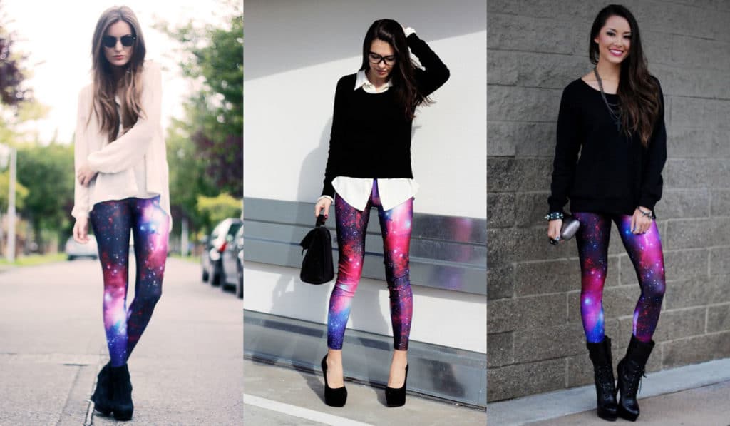 The most fantastic and beautiful types of leggings are the space view. Such leggings have a bright, multi-colored coloring in the form of space or space bodies. They are in great demand, every year continuing to gain more and more popularity.