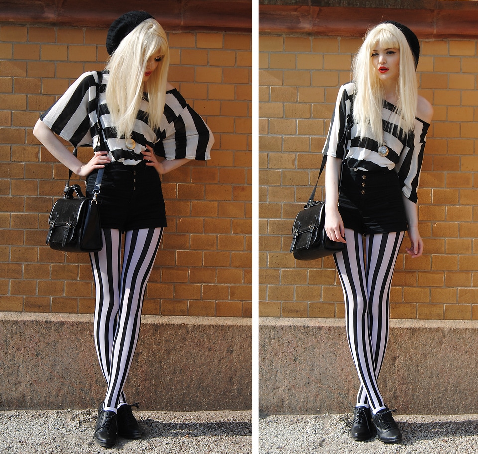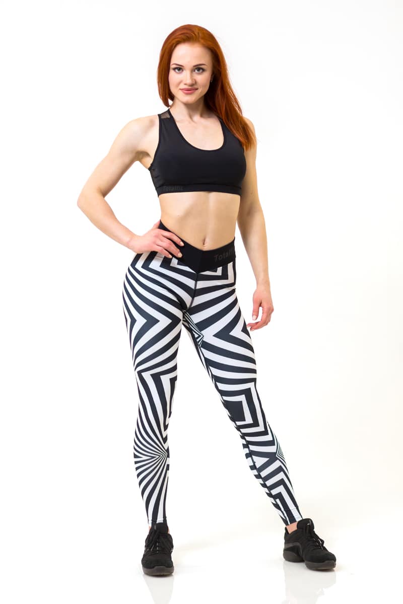 Striped leggings are very insidious. After all, the incorrectly selected size and direction of the strip can visually distort even the most slender legs. The most popular and successful option is black and white stripes that run in vertical lines.