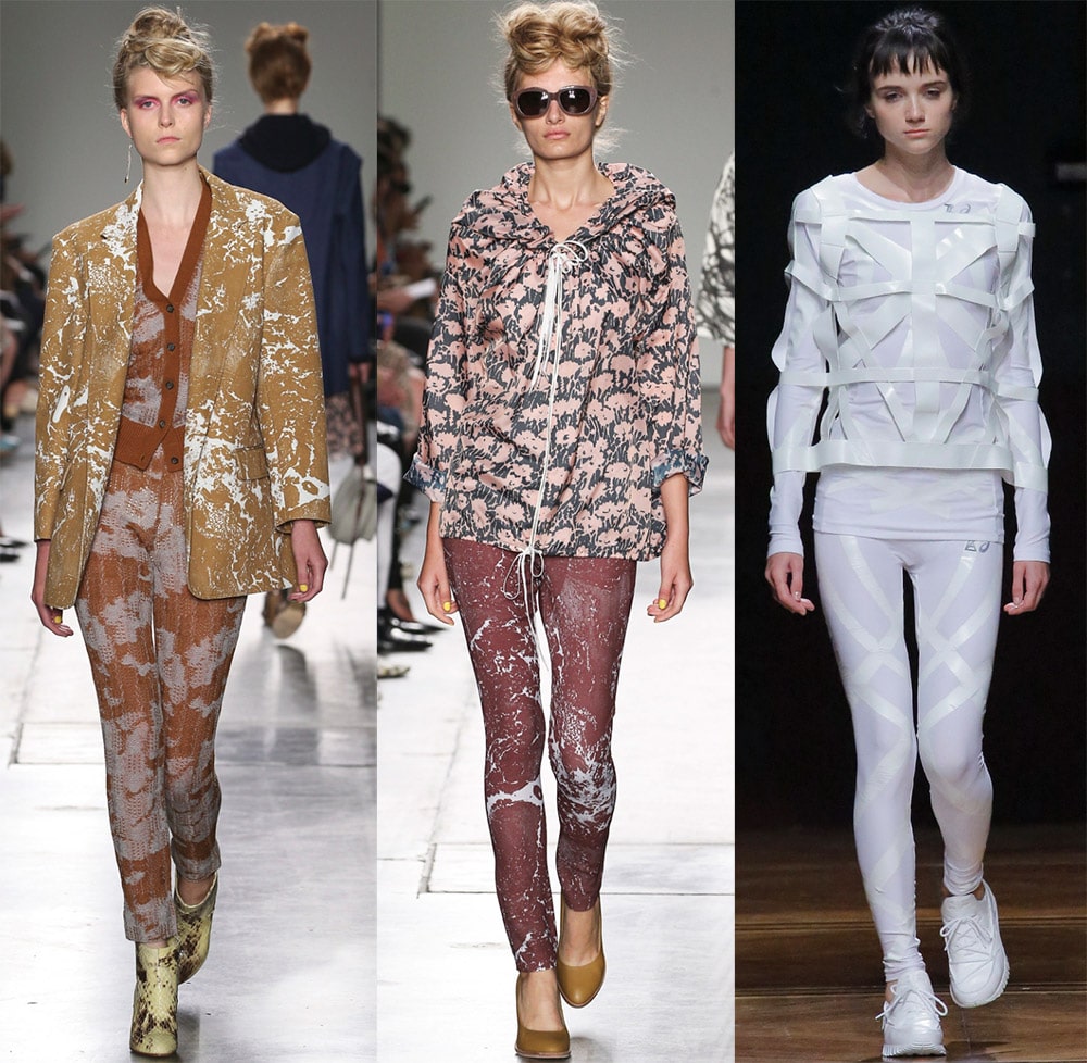 In another version, leggings have bright 3D patterns, as well as the effect of varnished wood or other strange, incomprehensible and sometimes even lurid colors.