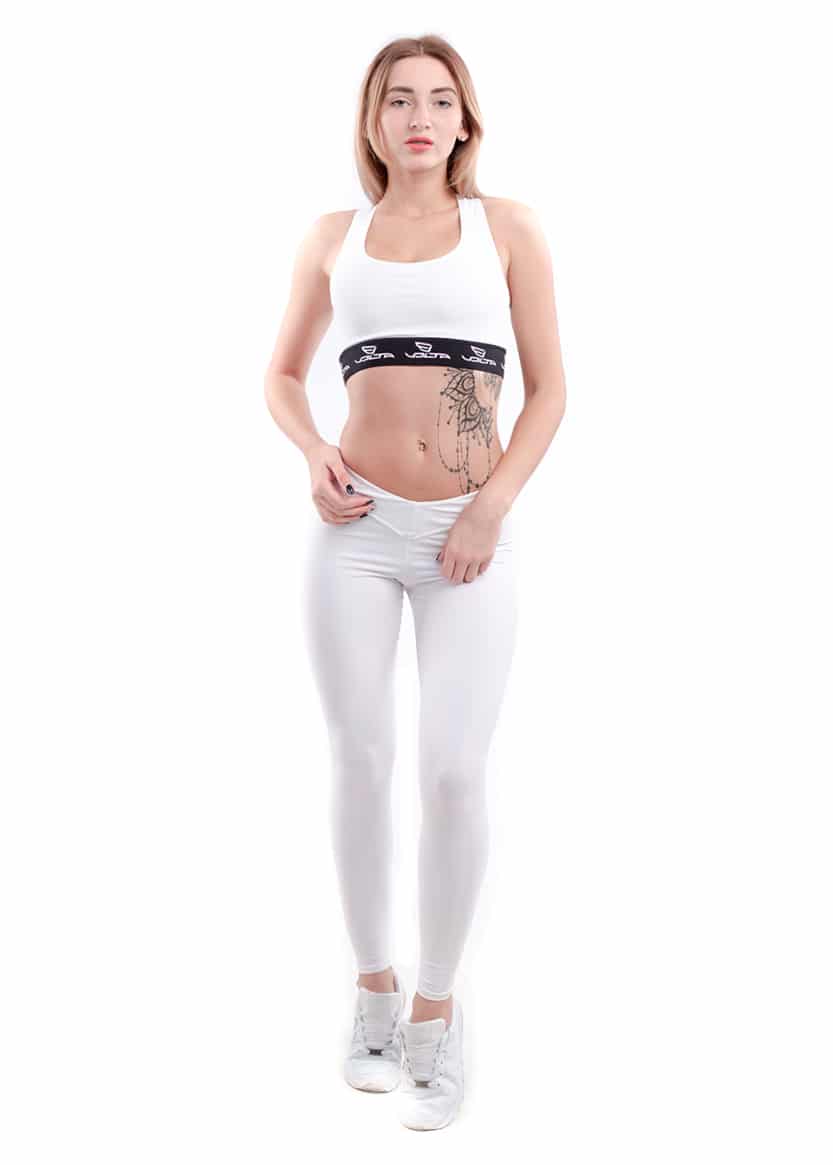 Sporty white leggings are great for jogging in the morning. It is best for them to choose a top in color or just purchase a ready-made kit.