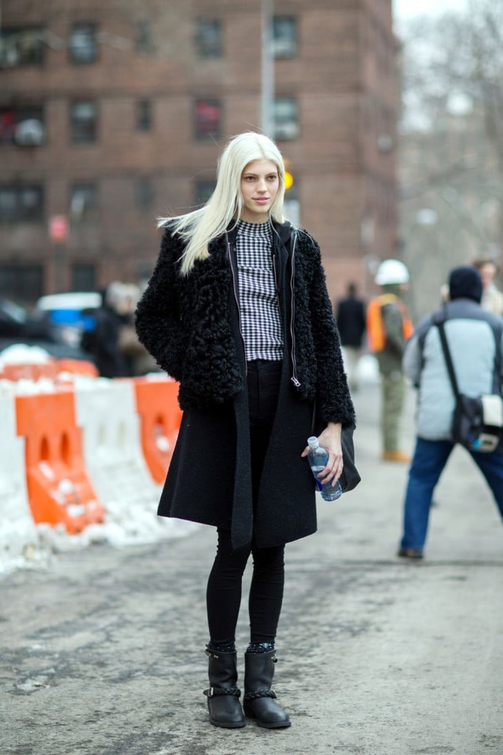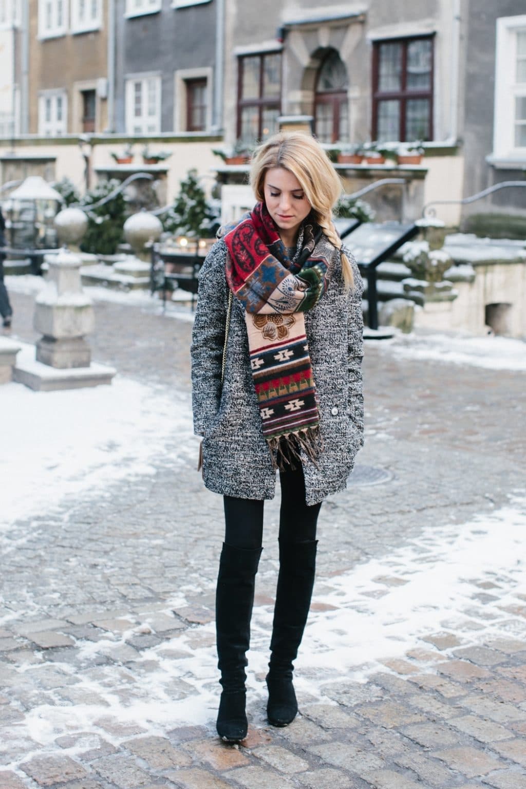 Ankle boots, boots or even sneakers go well with black leggings, the main thing is that you should not be cold in such models. Feel free to complement your look with wide scarves, caps or hats. By the way, many girls choose sunglasses as accessories.