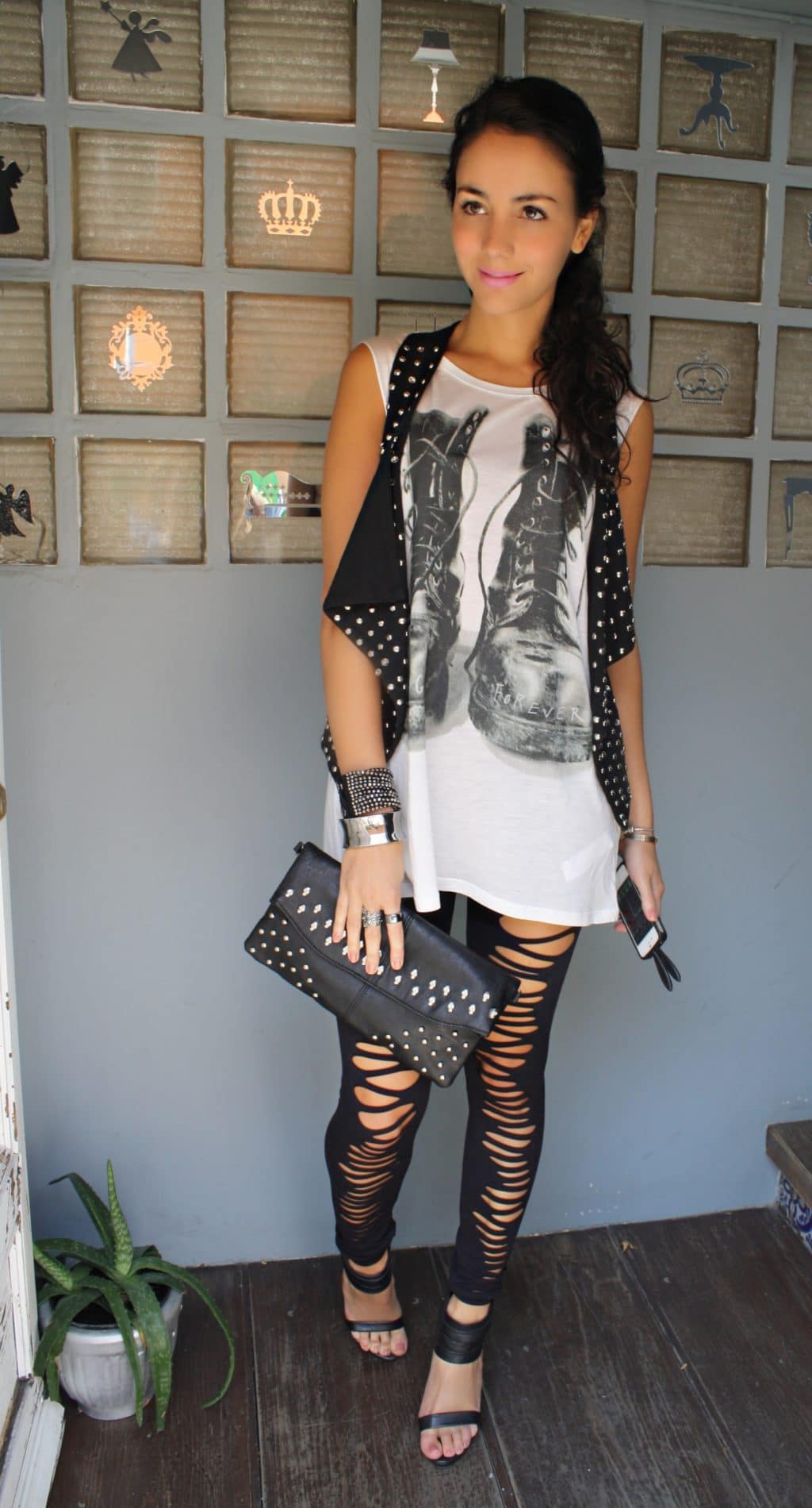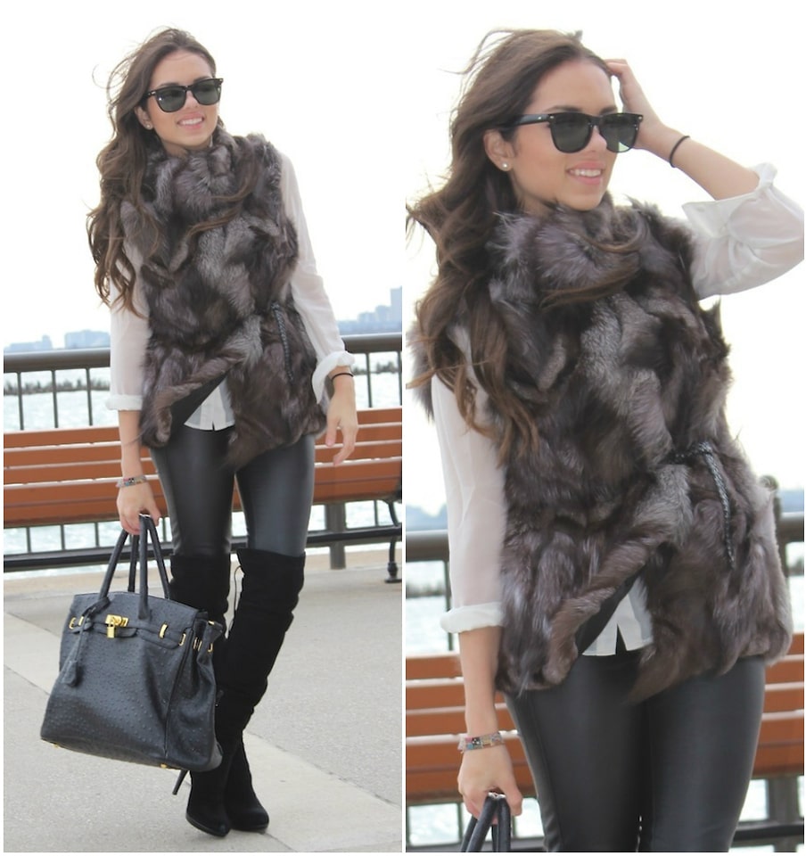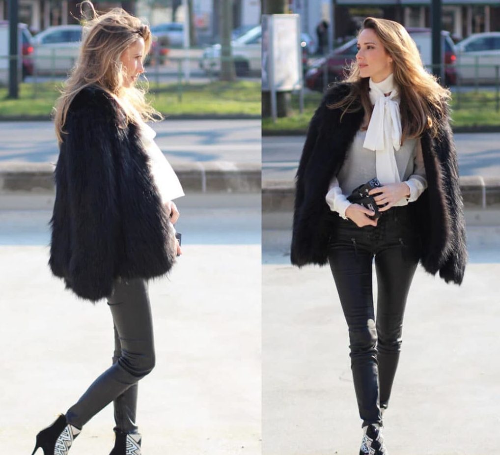 Perhaps, most often girl’s leggings begin to be worn in the fall. After all, it’s so good to combine tall, suede or leather boots with them. This look is perfect. fur vest and blouse.