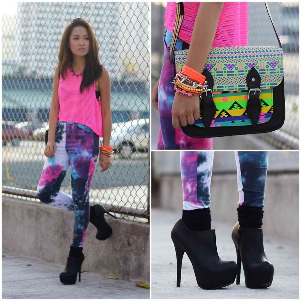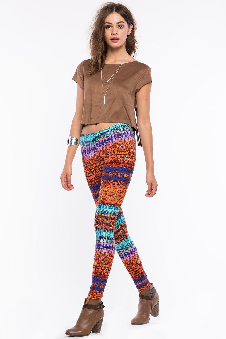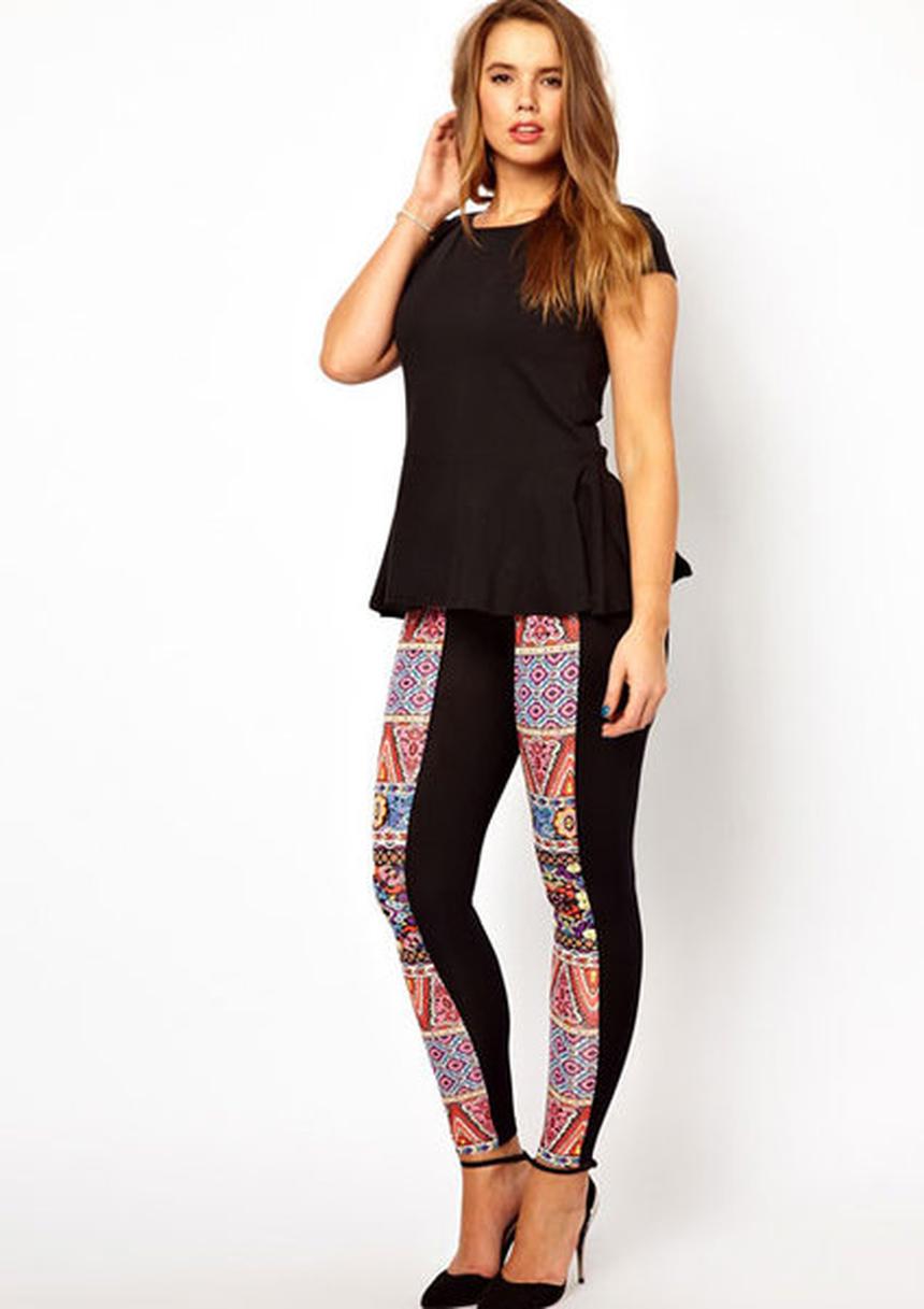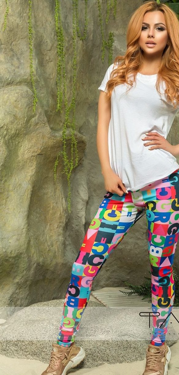 Multi-colored leggings are full of bright colors. Such leggings have a different pattern, ranging from abstract to complex ethnic. Various patterns, inscriptions or bright stripes are also allowed. Such leggings will not hide the flaws of the figure, but only emphasize what is not necessary. Keep this in mind when choosing such a model.