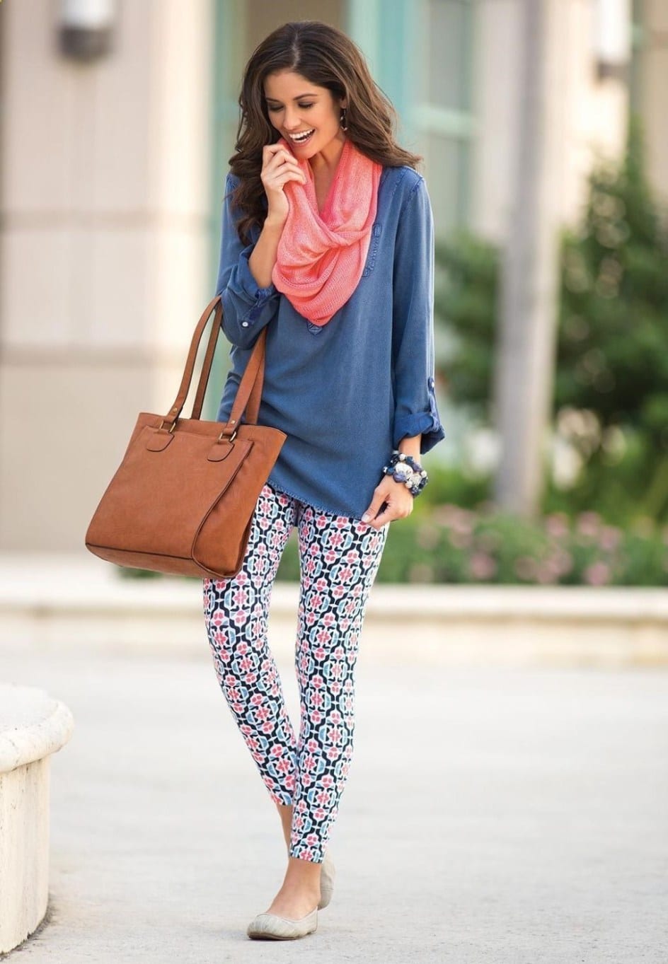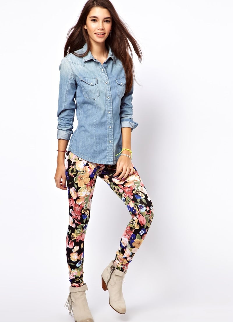 Floral leggings and vibrant print leggings are a good choice for spring outfits. Combine them with classic blouses, denim vests or sweaters in bright colors.