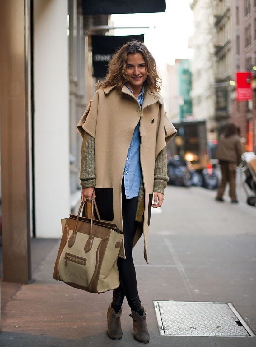A denim shirt, cream or black ankle boots, perfectly emphasize the bright colors of leggings, making your look stylish and unpredictable.