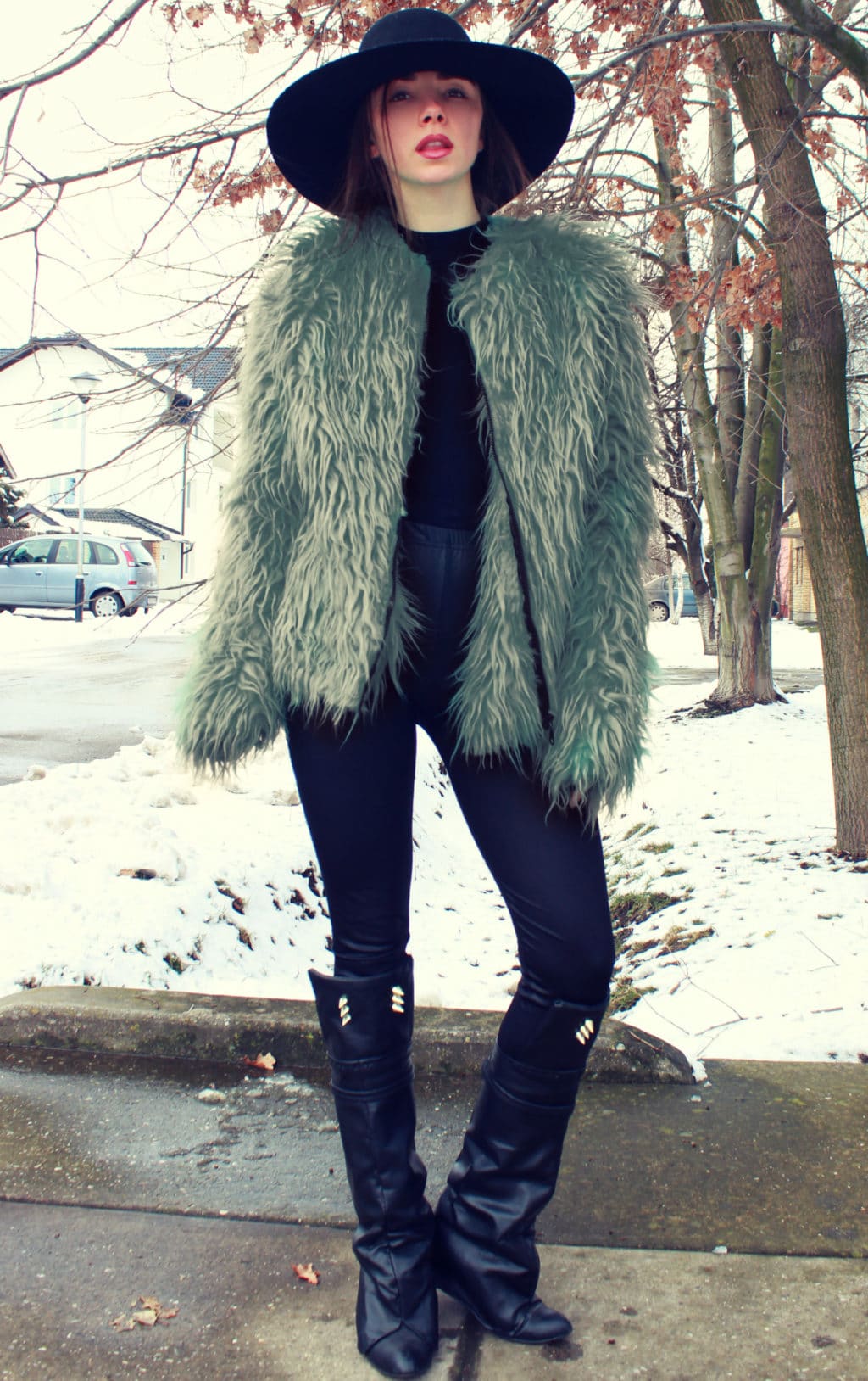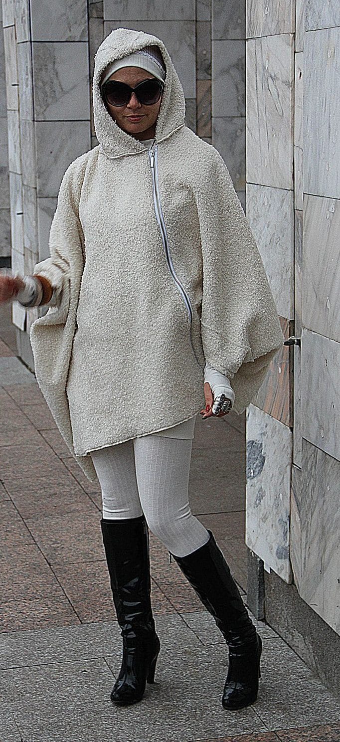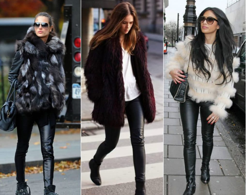 In winter, girls are advised to choose models of leggings on the fleece, as such models will be much warmer than regular summer models. To make the image successful in the winter, you should choose dark models of leggings. Combine them with tall over the knee boots or trumpet boots. Fur coats or a warm coat are good as tops.