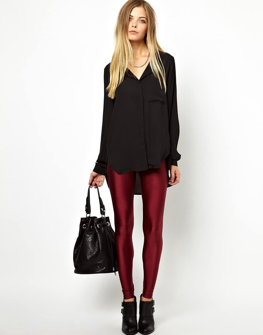 A very beautiful and rich color of burgundy leggings attracts fashionistas every year more and more.