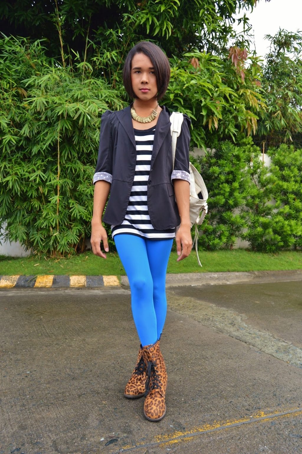 There are also regular patterns of blue leggings that are blue or navy blue. Such leggings are quite insidious and it’s hard to find the right color for them. The most successful choice will be things in dark blue, black or white universal color. Then your image will turn out successful and interesting.