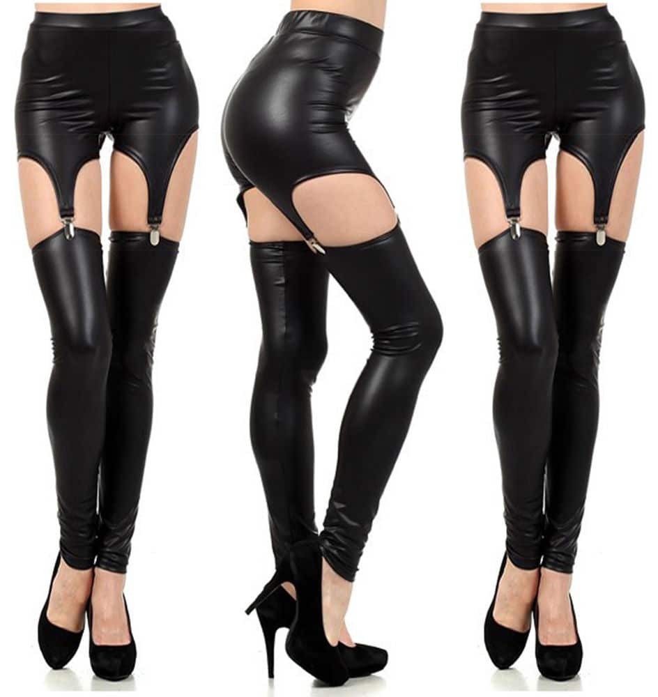 A leather look stands in line with black leggings. Such leggings are as similar as possible to patent leather, which gives them a certain special appeal and sexuality.