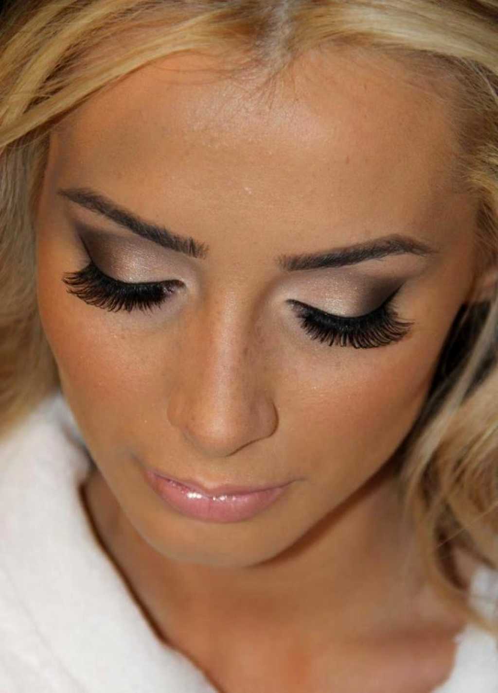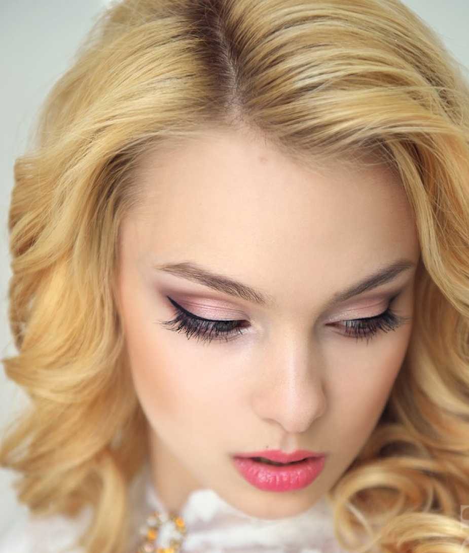 Blonde girls are recommended in a natural form of makeup, only slightly tint eyebrows and eyelashes. After all, if you are a blonde girl by nature, then your eyelashes and eyebrows have a very light color, which does not hurt to tint them a little. Small arrows with a black pencil are also allowed.