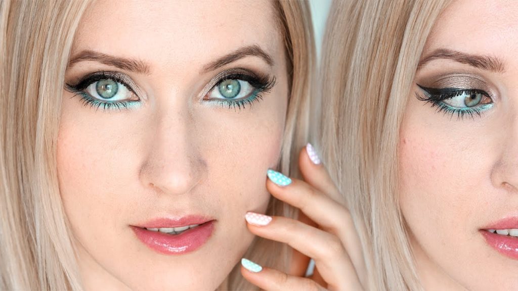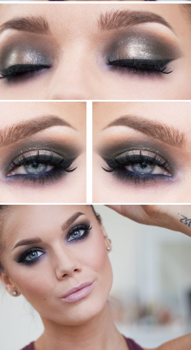 This makeup focuses on one part of your face. If you decide to highlight your eyes, then blue-eyed girls should turn their attention to gray shadows. They should be applied to the movable eyelid, and underline the bottom with a turquoise pencil.