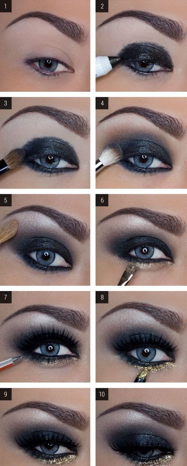 Makeup technique "Smoky eyes"Would be the best option for such evenings. By the way, blondes are suitable as the black, green, and dark blue shade of shadows that allows you to choose them to match the color of your eyes.