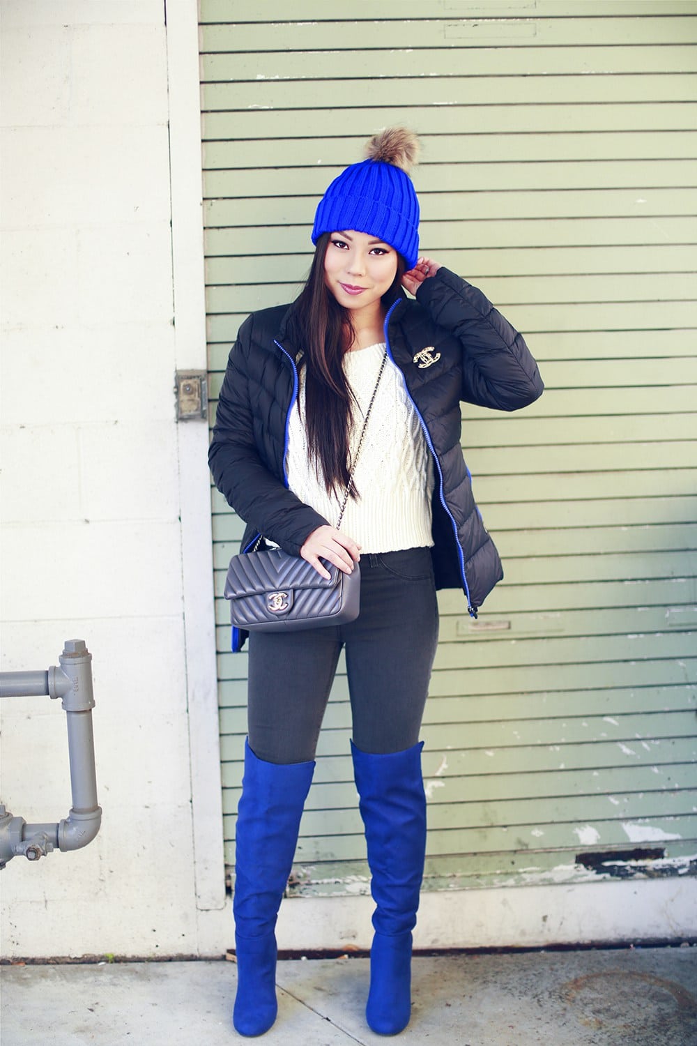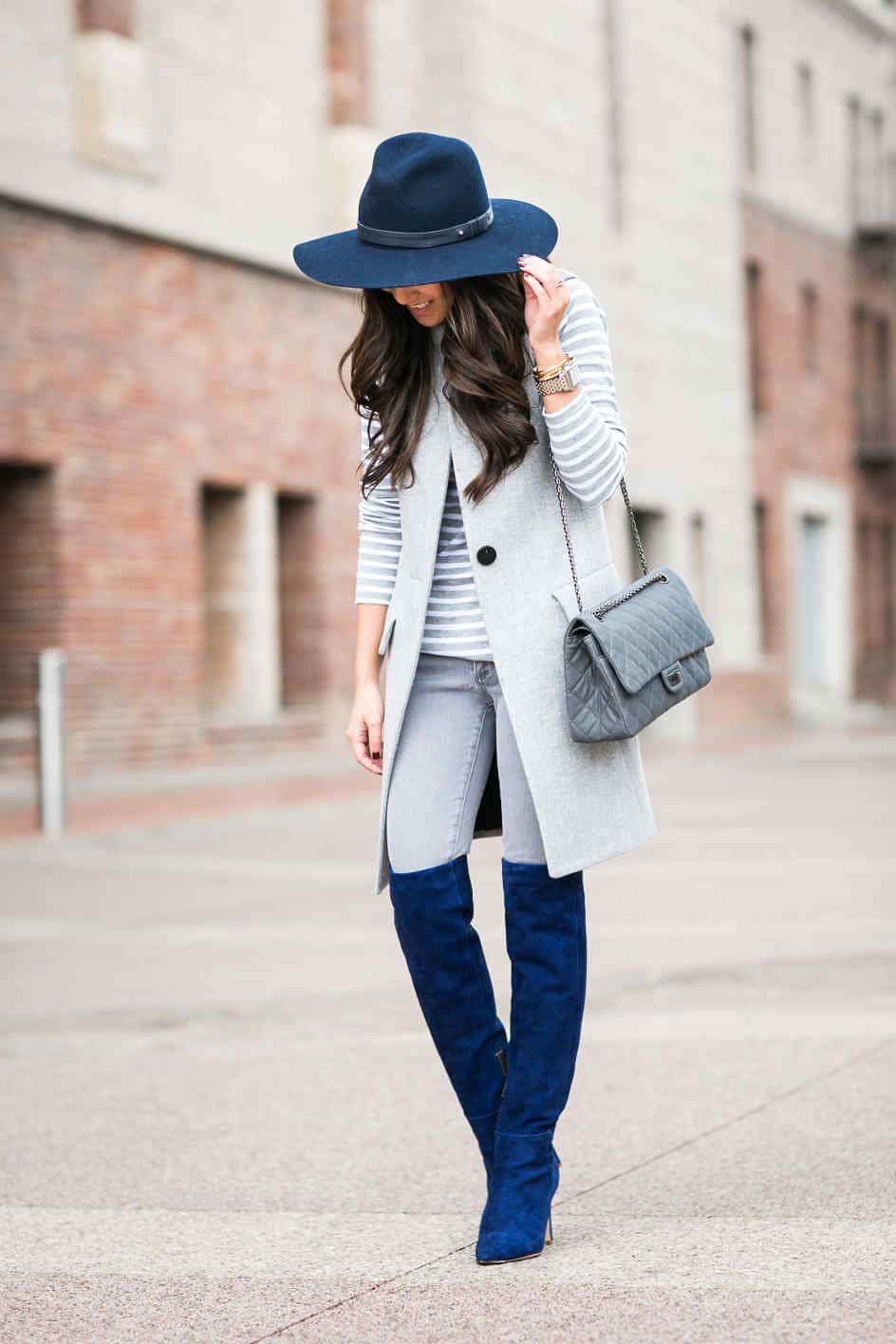 It can also be caps or hats. This helps to create a beautiful combination of colors and blue boots will especially stand out in this way.