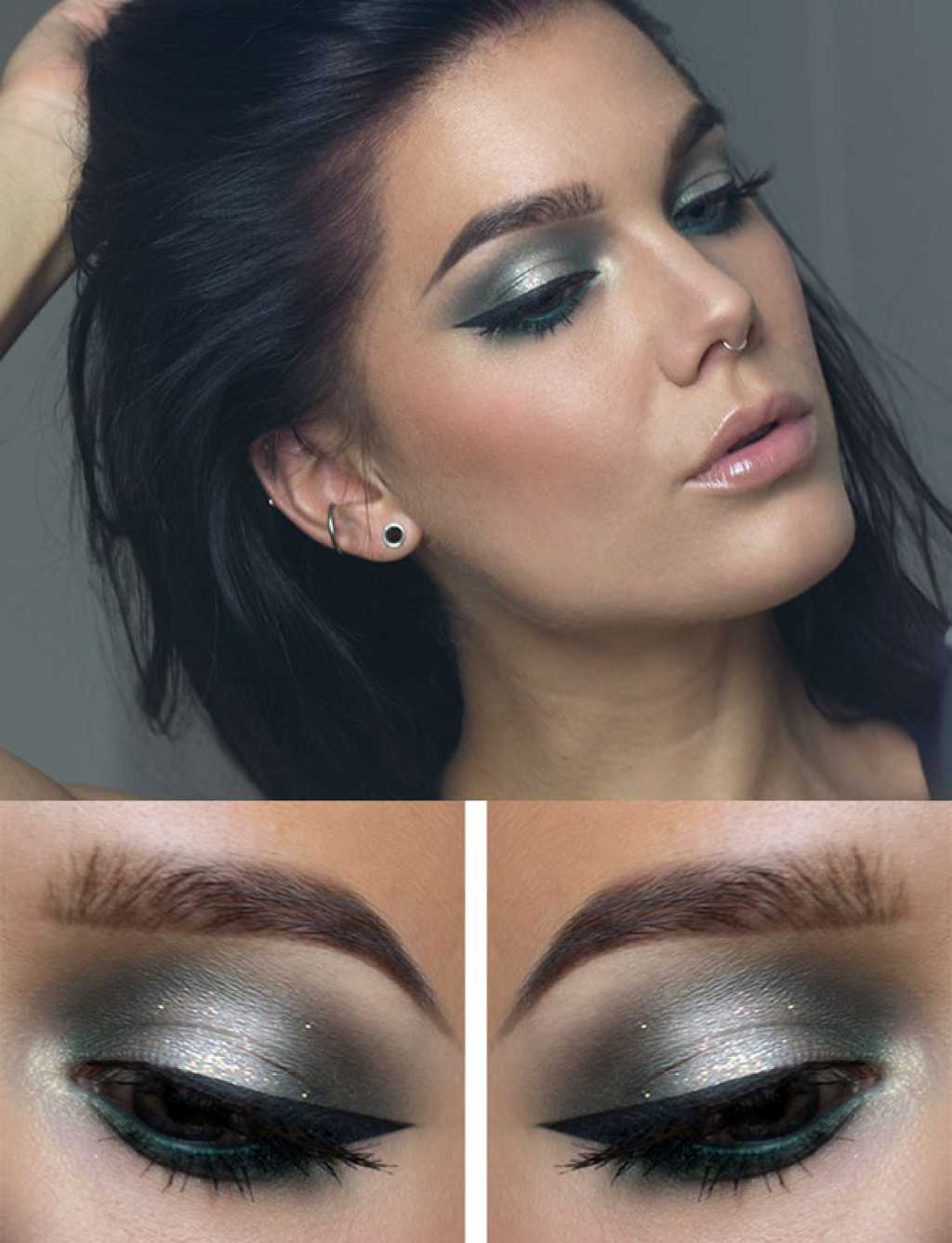 Gray shadows and black arrows will help you achieve a languid look.In order not to burden such a bright look of makeup, use pastel types of lipstick.