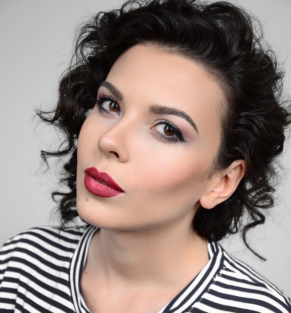 And in another more saturated and bright version, both eyes and lips can be distinguished in a bright tone. The most beautiful flowers suitable for brunettes are red shades of lipstick, fuchsia, berry extravaganza and purple gothic.