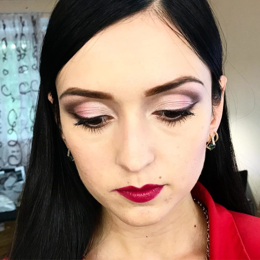 In a romantic make-up, your face should be beautiful in everything. It’s not worthwhile to make up for such meetings too in dark, bright makeup options, because you can frighten off a gentleman like that. The best solution is to emphasize the eyes in a dark brown palette of shadows, the lips in a matte berry lipstick, and apply pink blush on the cheekbones.
