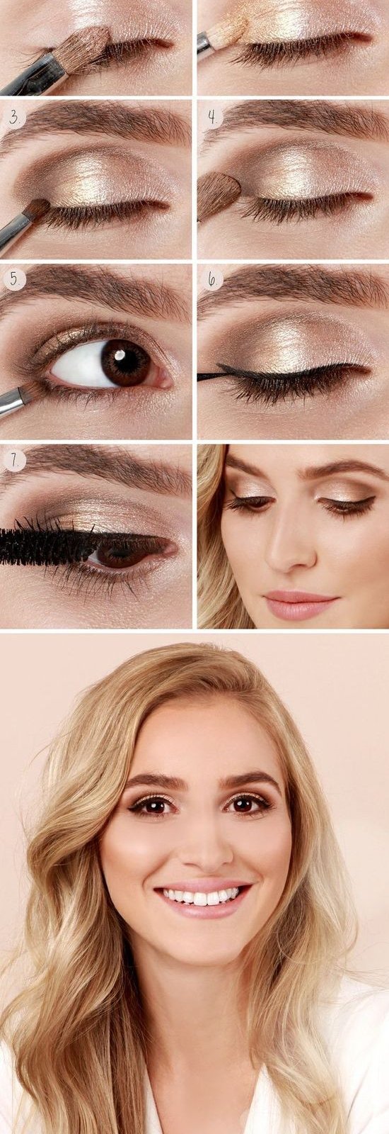 Do not forget for the dark shadows that you can apply in a smoky technique. A small addition of pencil and pink shine will help you create beautiful and cute makeup.
